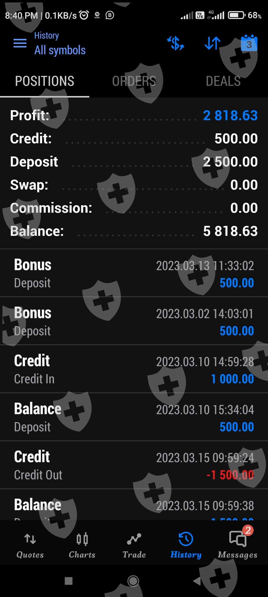 I deposited 2000 $ and earned profit of 2818 $.
