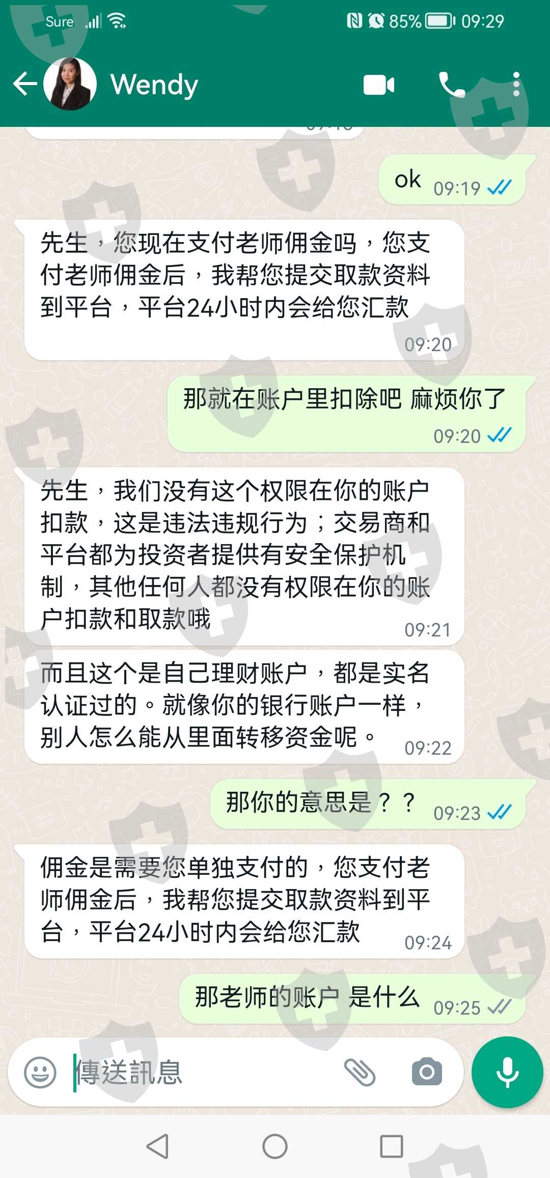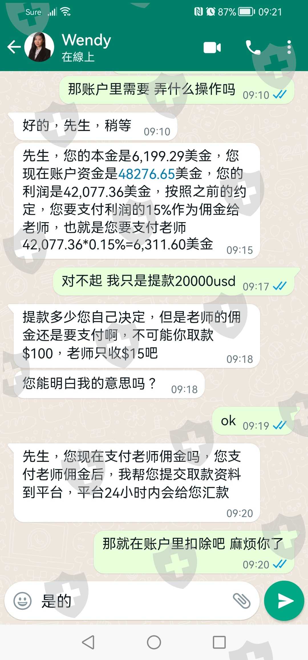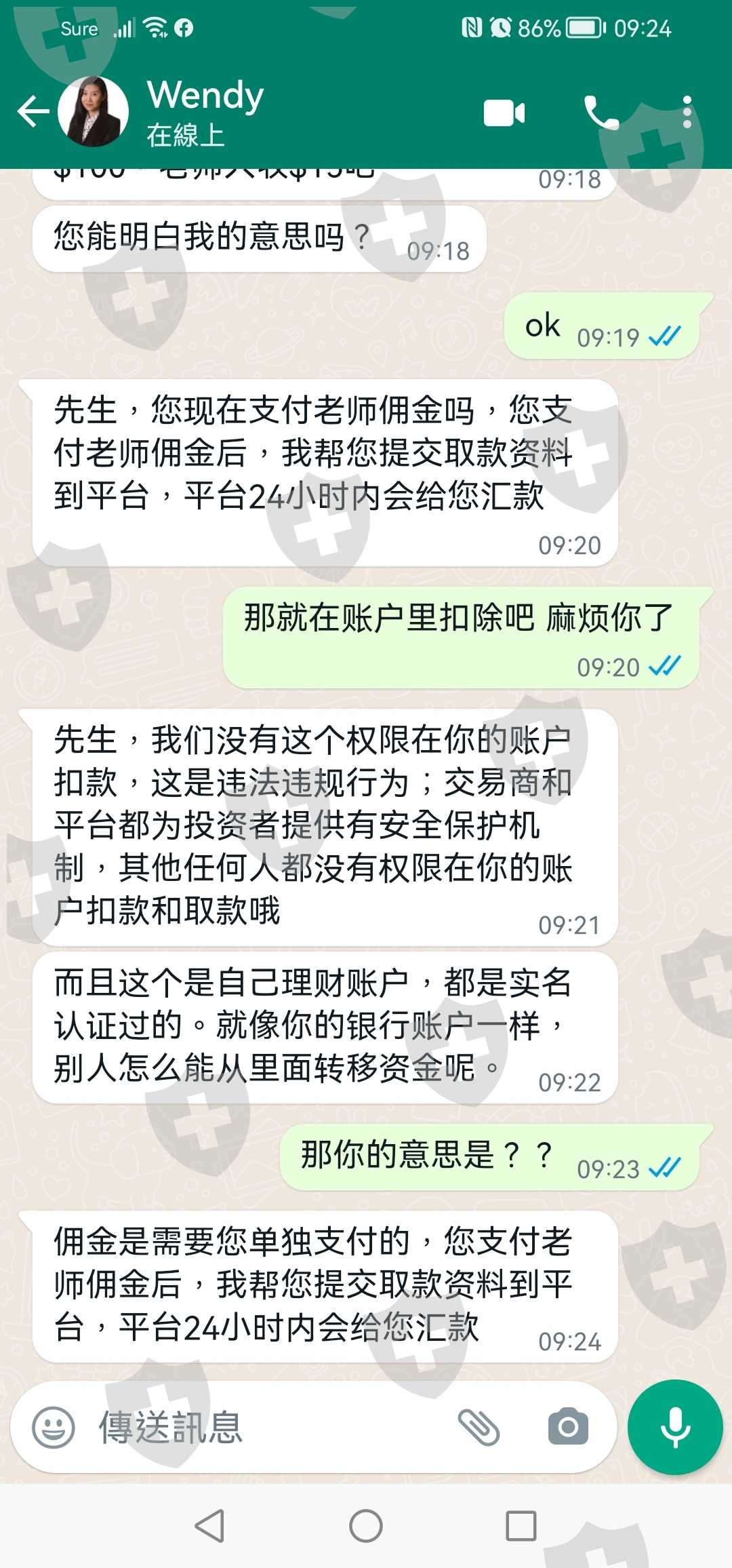 第一次取款 需要先支付老师的15%佣金 助理才可提交资料 给平台处理出金 不合理。后续的话就是在利润里面面扣除的