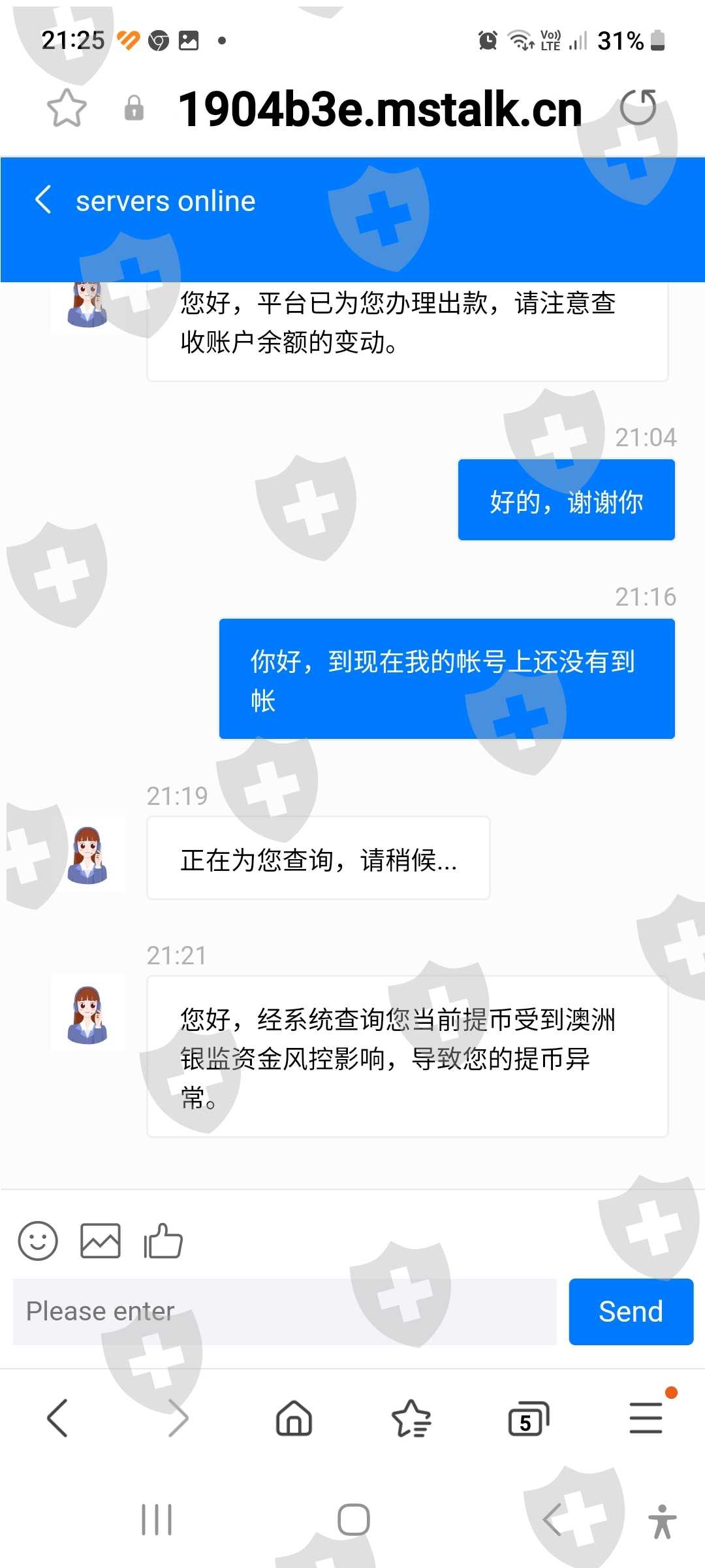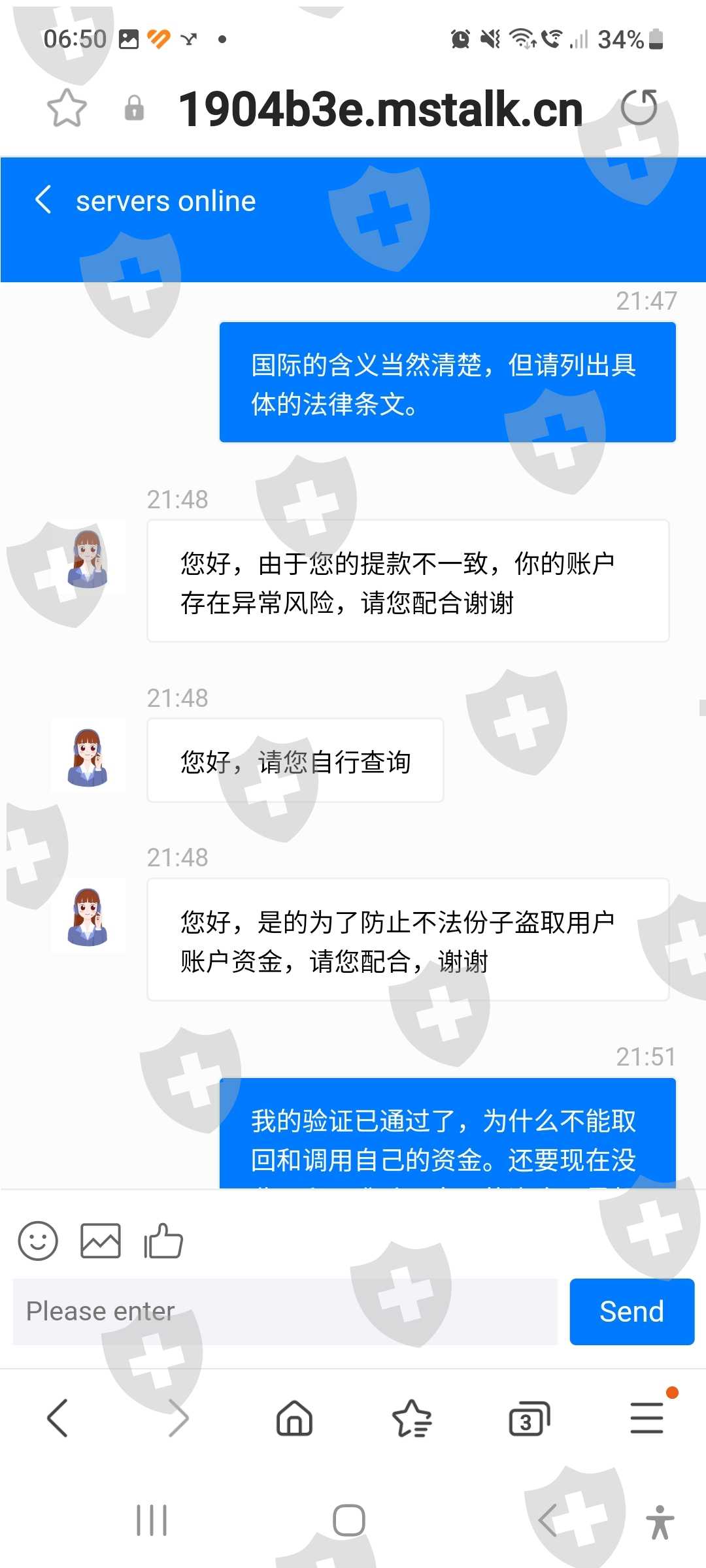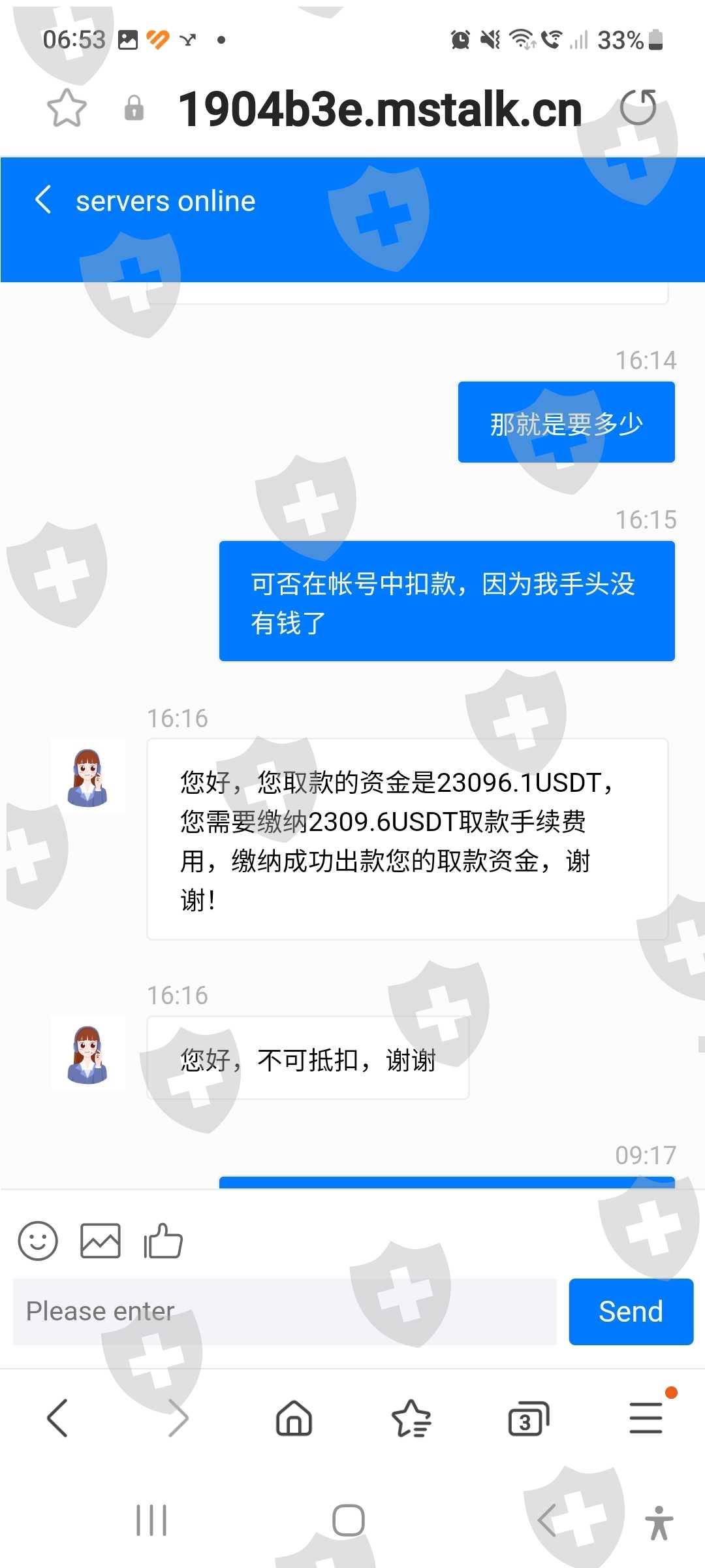 在一个网友的介绍下进了这个网站买币。先是赚了260usdt 让你提币转账后。再继续投入了差不多15000澳元。到一次转币4000usdt 的时候就以不是你的地址为由扣着不放并冻结资产。等我交纳了所谓的验资后就要再进多了百分之八十的流水量。等我要提款时就要交2210usdt的抽水。的我交了后,又以滞纳金为由要交每天百分之五的钱。今天交完了又以风险控制金为由再1270usdt的钱。这个是钓鱼平台请慎重。