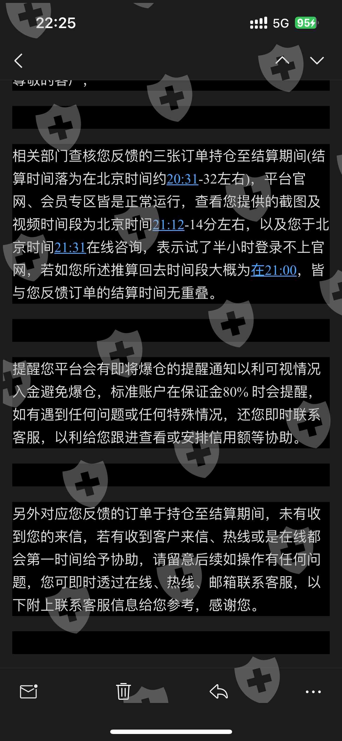 本人于4月28日发现我账户有些扛不住,于是准备入金加保证金,可是我20:00发现GMI官网网站登录不上去,试了两个手机一台电脑都登不上去,眼看着我的账户爆仓,我爆仓的时间为20:31-32,三笔单子,也没有联系平台的渠道,没办法补仓。 后来官网可以登录是在21:31,我登录进去通知客服官网崩了,期间我都不知道怎么联系平台,后来登录上我又入了金以证明我的账户当天是可以入金的,但我己经爆仓了于事无补。 在我有GM网站故意崩掉的证据,有登录视频有代码和截图,有通话记录,在铁证面前还咬定是我的网络原因。 我不接受GM!得拔网线行为,这与我的网络无任何关系,当时我用电脑也显示我登录不上去,我要求GMI对我进行合理的赔偿,本金十利润,GMI官网有义务保持网站的畅通用来我对资金的调配。 我也不知道GMl是真心或者是假意调查,他们的技术部门只要看了我得视频和图片就知道那时是网站的问题,登录如果是网络问题就不会出现一大堆代码+客服电话打不通,gmi也证实了我没打他们的客服,我打了但没打通,有通话记录。