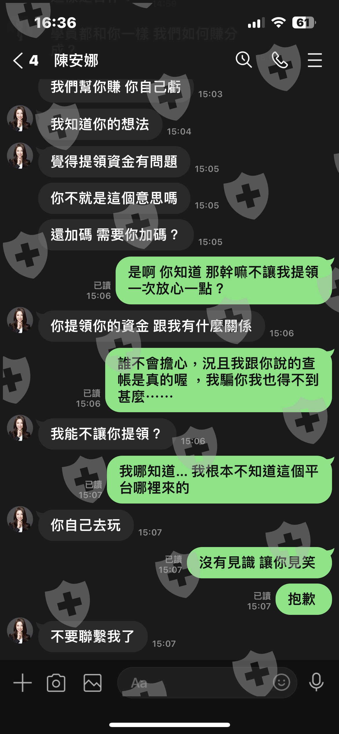入金1515 有盈利目前2358 打字不以讀也不做回應不給處理方案