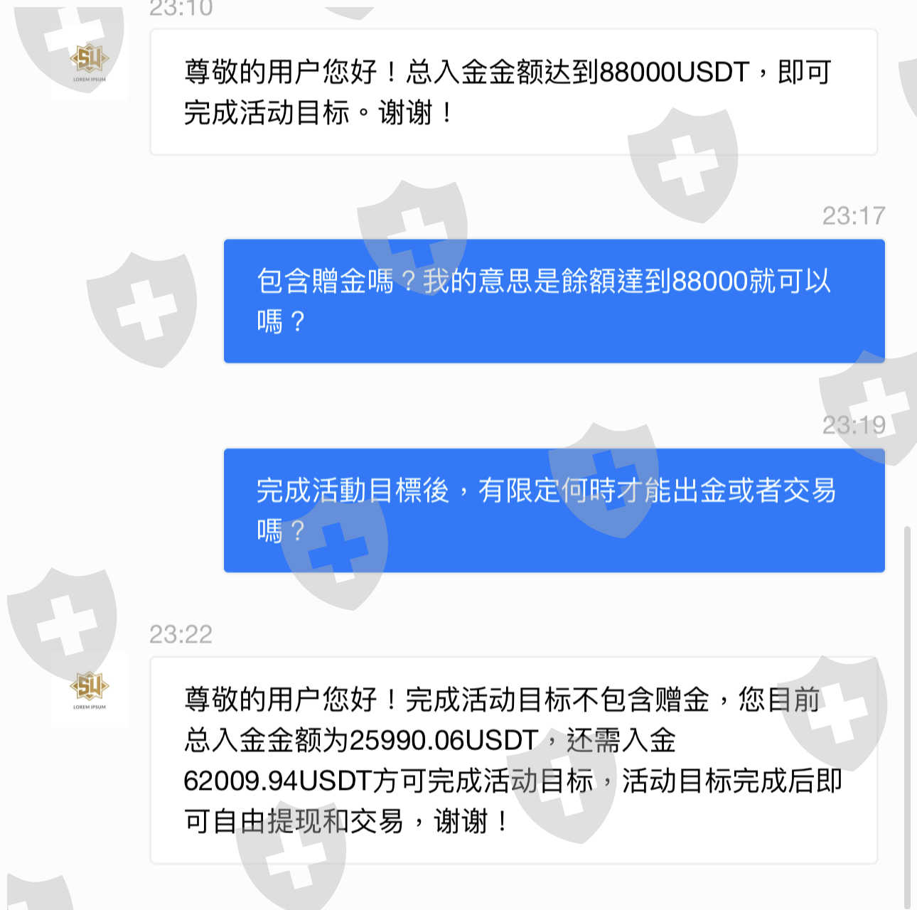 跟之前的案例一樣,來自香港名叫顧嘉新,噓寒問暖還直接稱呼寶貝,開始先用對帳單誘導你,說希望能帶著我賺錢,還規劃美好的未來,一步步教著開戶幣安、MAX 、Tradingweb 交易平台,先小額入金,然後帶著下單,有獲利之後,還說自己規劃行情很準,指數波動行情不是天天都有,可是做足了功課算好數據才能有此獲利,開始鼓催入金就這樣我入金了1.3萬美元加上獲利帳戶共有1.7萬美元,對方說幫我規劃了3萬美元的操作,我告訴他我只有這麼多了,他居然主動幫我入金到3萬美元,隔天又有獲利資金總額來到3.8萬美元,我想出金他告訴我先別出金,問我是否收到mail有贈金的活動,並要我去跟客服預約入金贈金活動2,我不疑有他跟客服預約了,5分鐘後贈金馬上進了戶頭,同時告知在4/28號活動任務完成之前不能出金也不能交易,他每天催著我入金,延遲一天就會被扣5%的費用,就這樣我掉進這陷阱中,我告訴他我根本無能為力,他居然要我去借款去貸款,不足的部分他會幫我補上,就這樣前前後後我總共入金了2.3萬美元,更可惡的是客服居然說盈利不能當成入金的一部分,這時他又好心的說可以幫我5.6萬美元,我趕緊搜尋詐騙才發現之前已經有發生同樣的案例了,還把連結給他看,他為了取信於我還主動入金了4.8萬美元,最後告訴我還不足8000美元要我自己想辦法?我知道自己是被騙了,於是我要他自己想辦法,各種咒罵隨之而來,說我搞他坑他