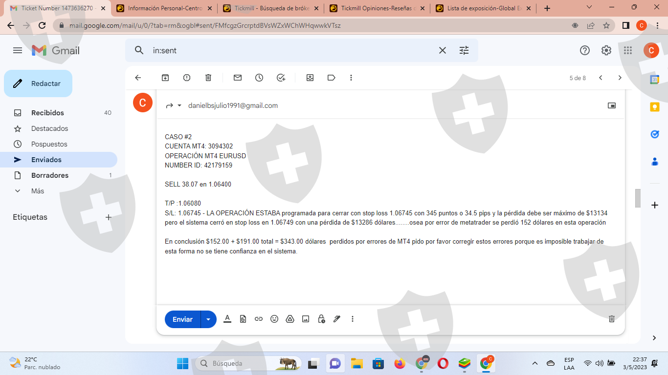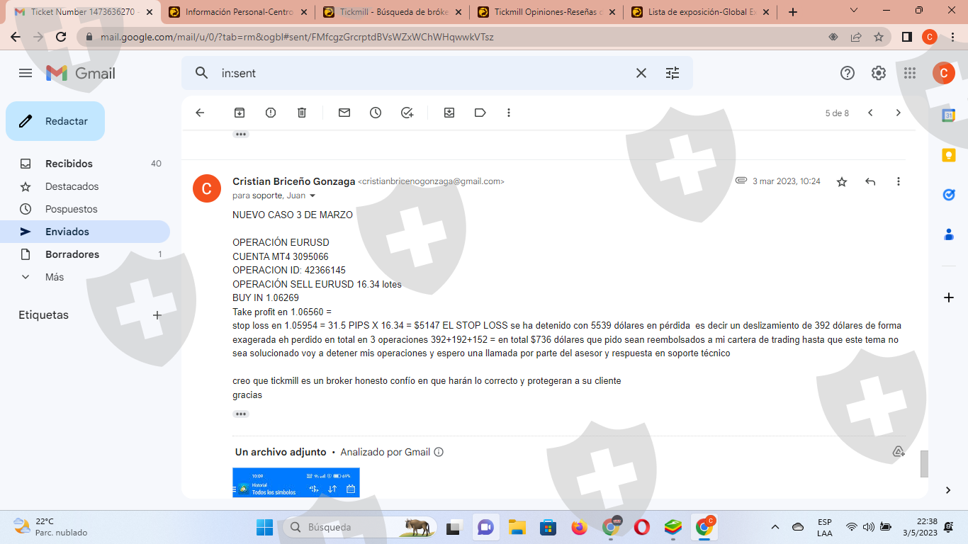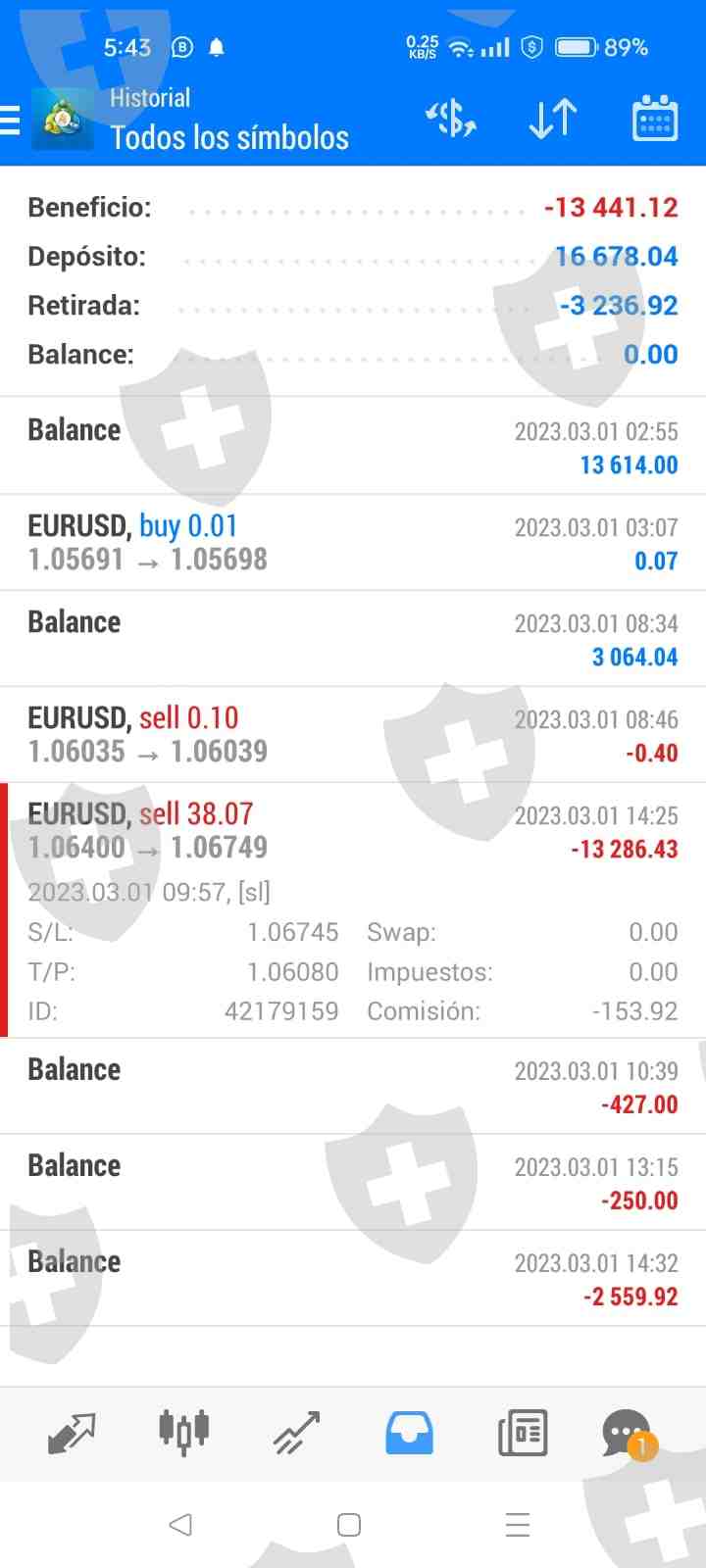 我的名字是 Cristian MiLlan Briceño GONZAGA 我的电子邮件是 cristianbricenogonzaga@gmail.com ....我在这个经纪商开了一个账户 我开始在一个贵宾账户工作 我开始注意到一些奇怪的事情,例如这个账户是零点差但是当您发起 20 手或更多的操作,使您的价格低于或高于 10 点或 15 点,从而陷入较大的浮动损失。根据这些主题,如果您买入并在 1.10250 止损,它们将在 1.10263 止损,因此它是与我写信支持的这个经纪人一起操作是完全危险的,他们从不承担责任,这是一个很好的经纪人,但他们把它变成了一个完整的骗局。止损是 24 点,手数是 16。你能想象有384 美元仅在 1 次操作中滑动,这是致命的......对任何 PSDTA 交易者的威胁......支持从未回复的消息他们带着我的 1000 美元或更多,最重要的是,如果他们向我收取价差我有那个的视频