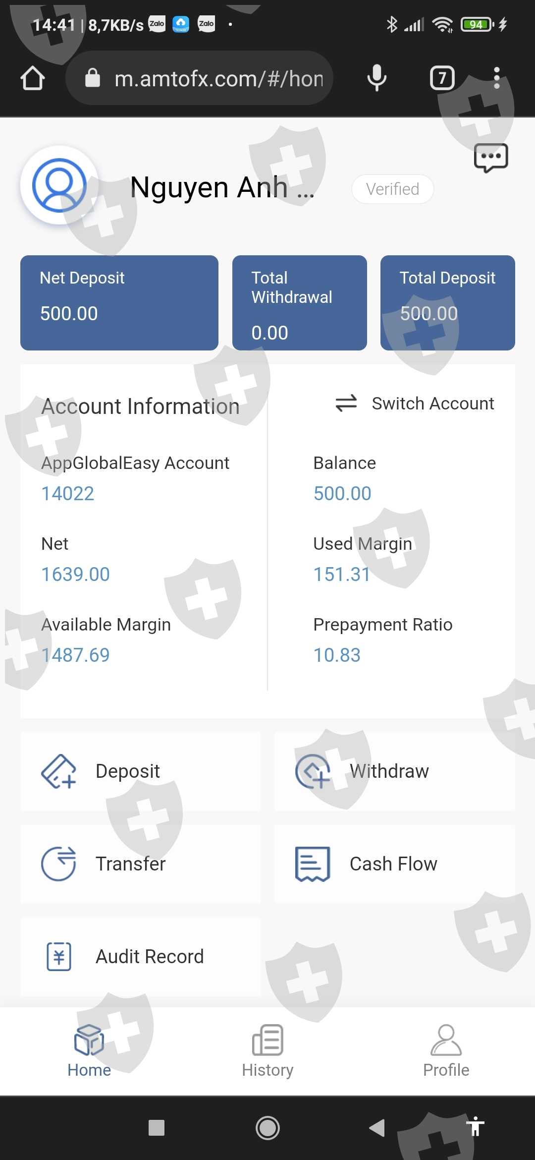 我在AMTOFX入金了500,赚了398美元,我从21/4/2023 开始从14022的账户中提取800美元!直到现在7/5/2023 钱还没有到我的银行? ?这是黑交易商? ! ?请帮帮我!