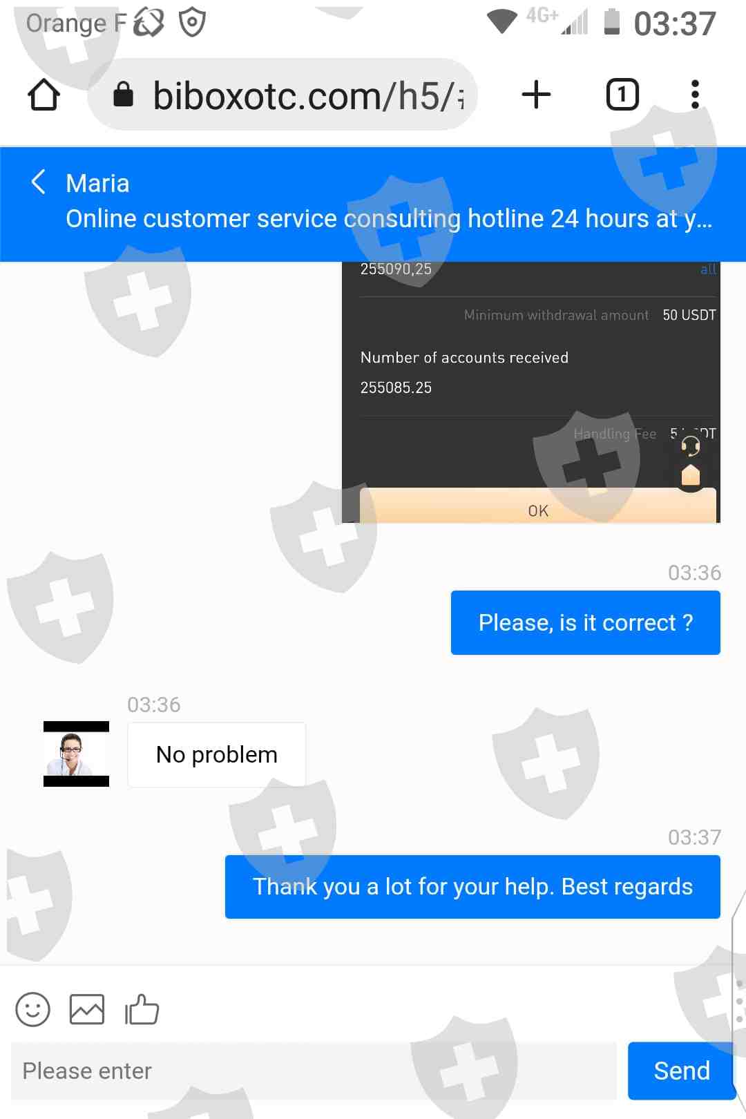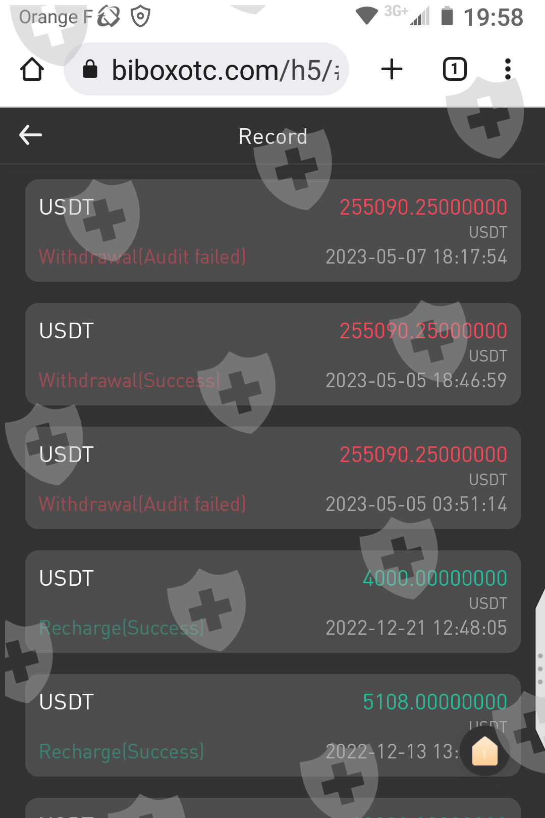 successfully my 255KUSDT digital assets from BIBOXOTC platform with paying her