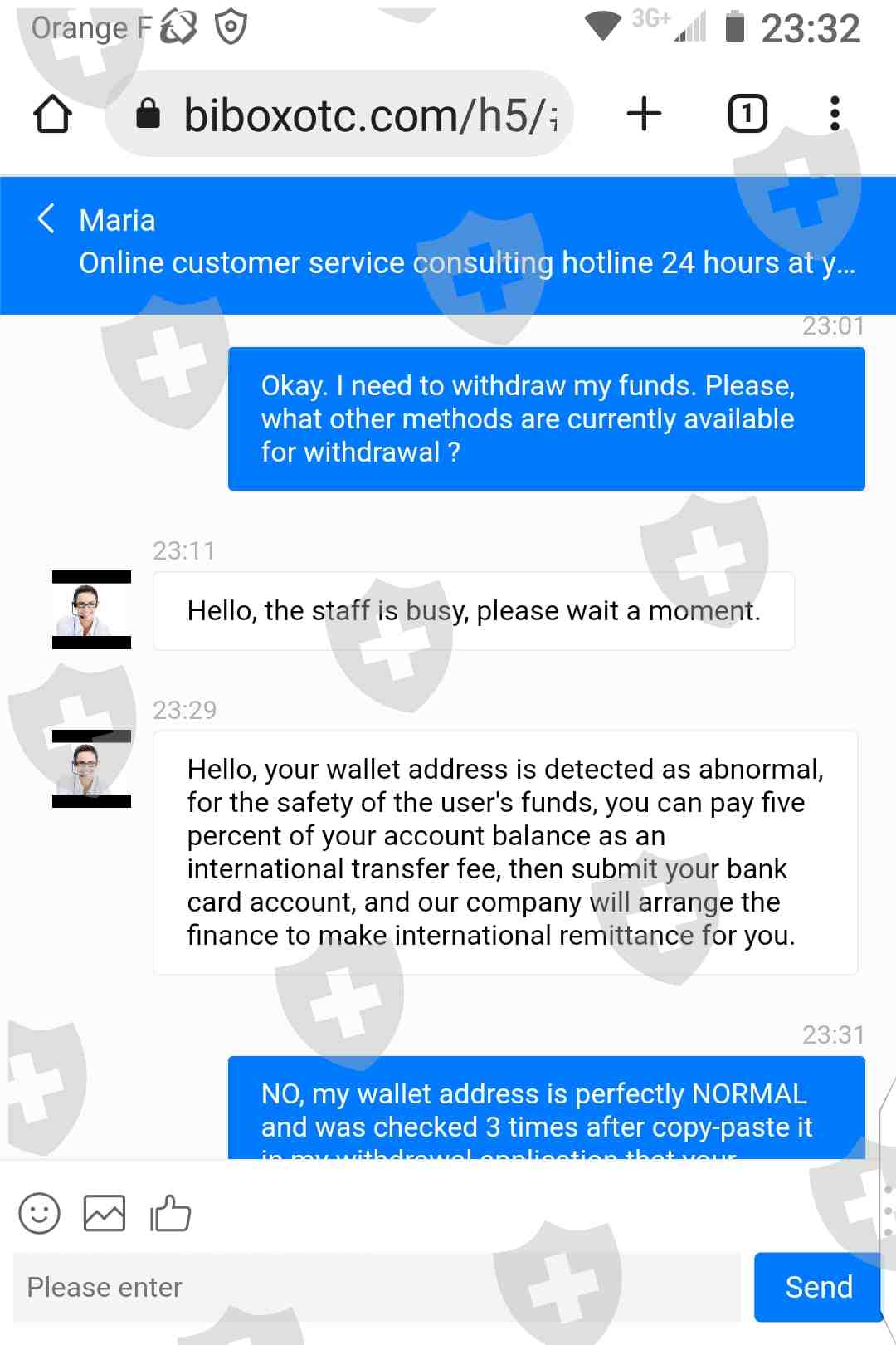 BIBOXOTC Online Customer Service with telling them that I ABSOLUTLY DON’T HAVE