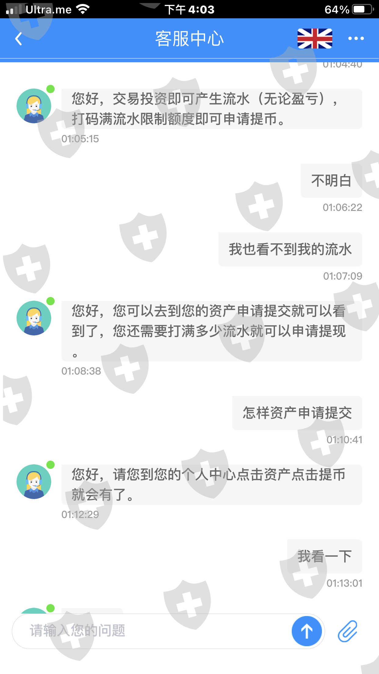 Tickmill平台无法出金 跟客服沟通 客服要当日操作流水 而且当日操作流水必须是入金额的一倍 可我按他们说的我出金当日流水已经够一倍以上 最后还是不让出金 最后客服人员不在理我 现在平台我也不能打开 这是一个黑平台 一个骗局 希望大家不要再上当受骗 我当时入金额998美元 出金申请的是 2458美金