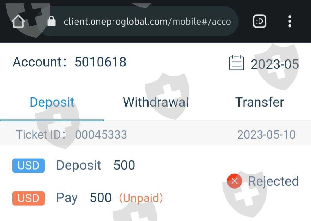 我入金了,而且钱也从我银行账户上划走了,但是onepro平台声称我的500美元入金失败了。请把我的钱还给我。