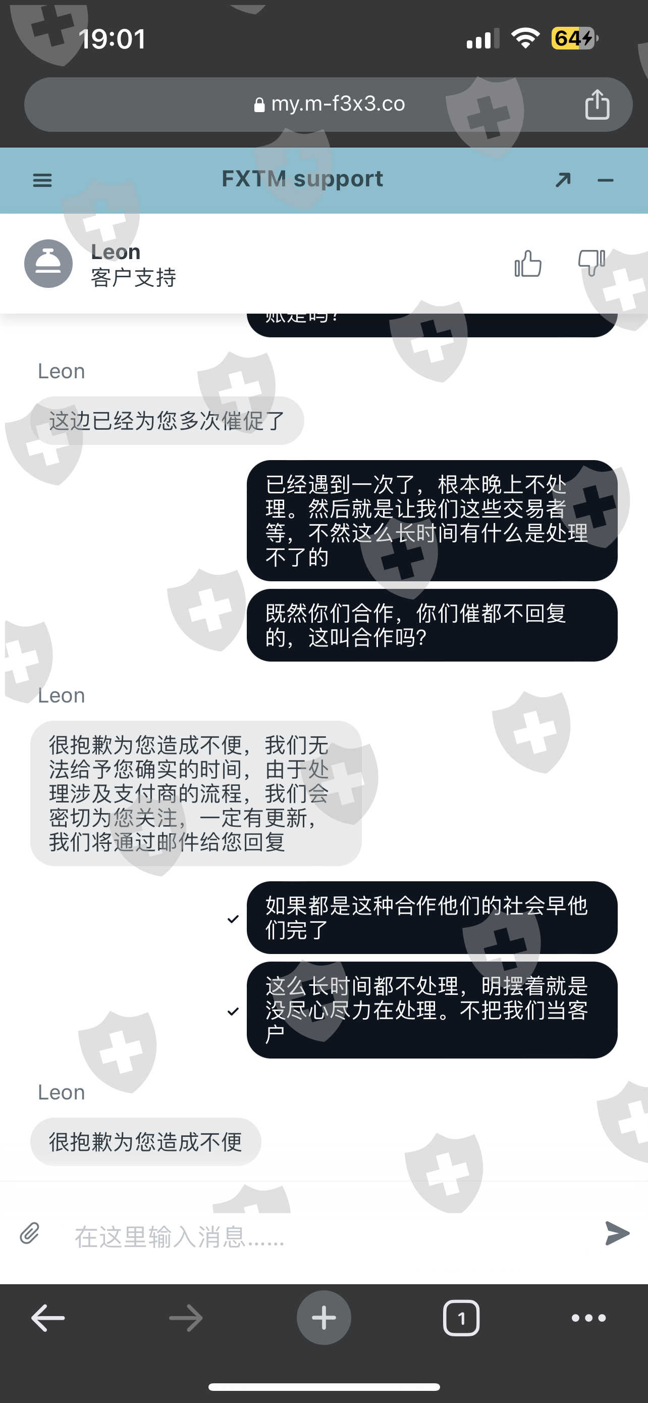 在此曝光富拓平台入金不到账。多次催没有结果,一直说平台是大平台。资金绝对安全。入金保证到账出金也是。我已对此曝光该平台。希望大家注意不要在这平台交易。以免到时出金不了。入金也不见踪影。