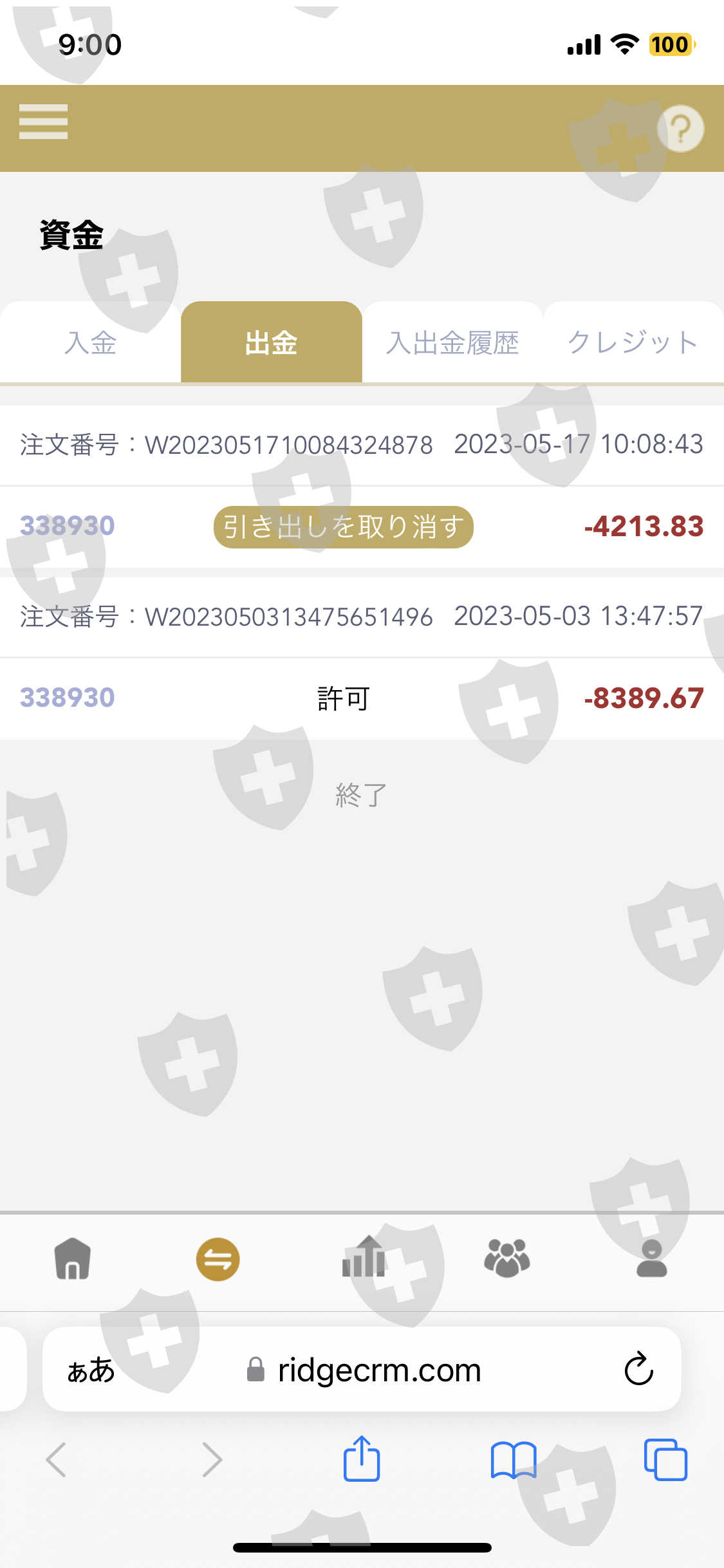 出金申請しても担当から返事がない