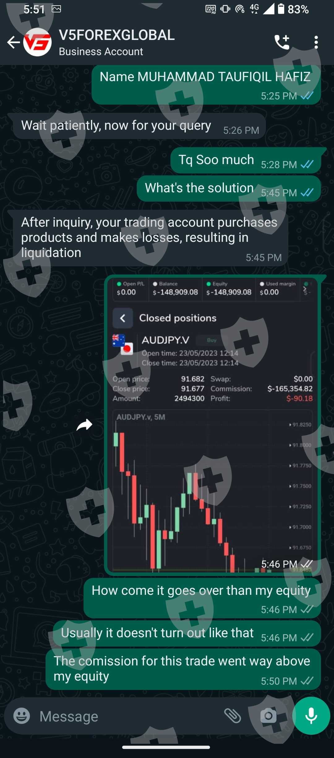 每笔交易都骗取佣金,突然比账户净值还高100,当联系客服时,因为荒谬的佣金,它说我输入失败,立即平仓了我的订单