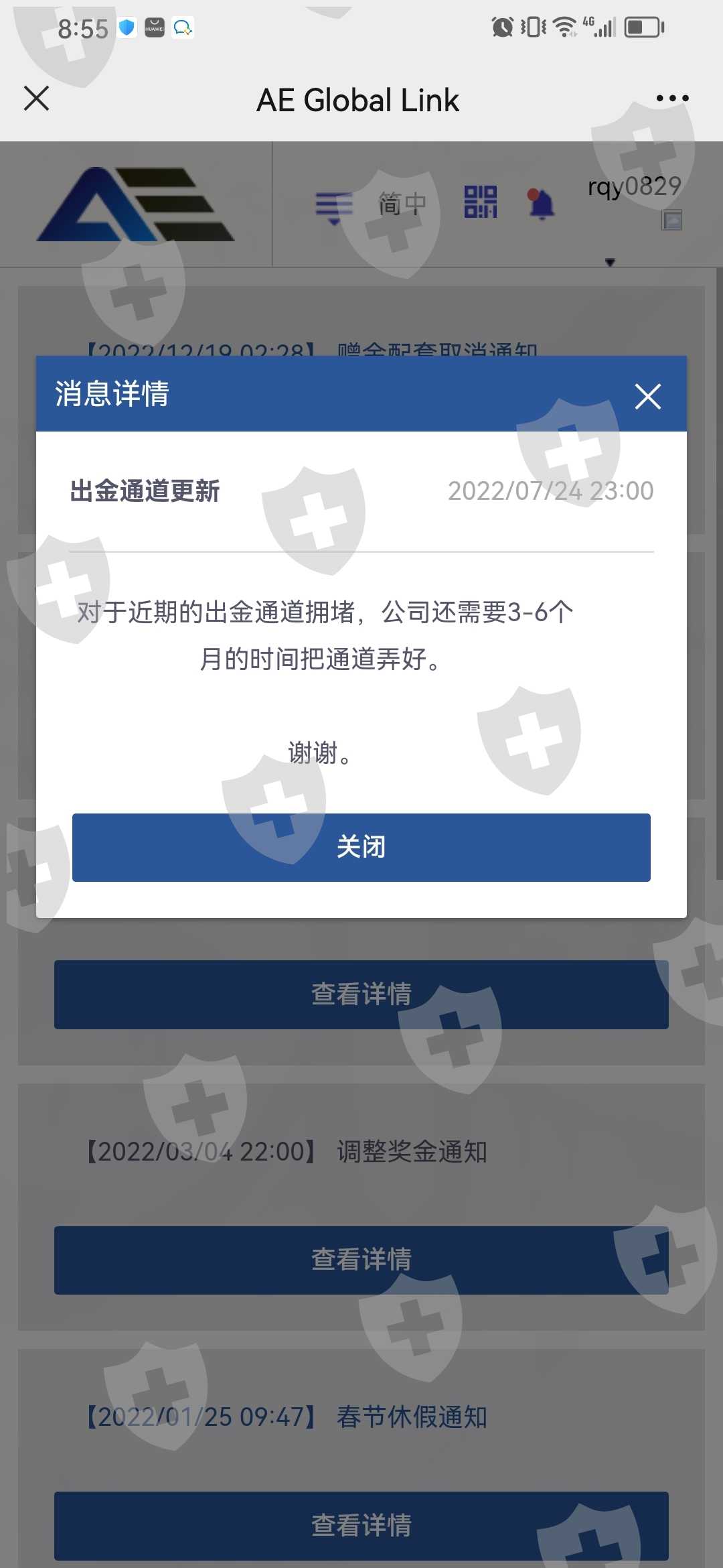 一直没有消息,通告信息已超半年,还是无法出金,是否可以出金