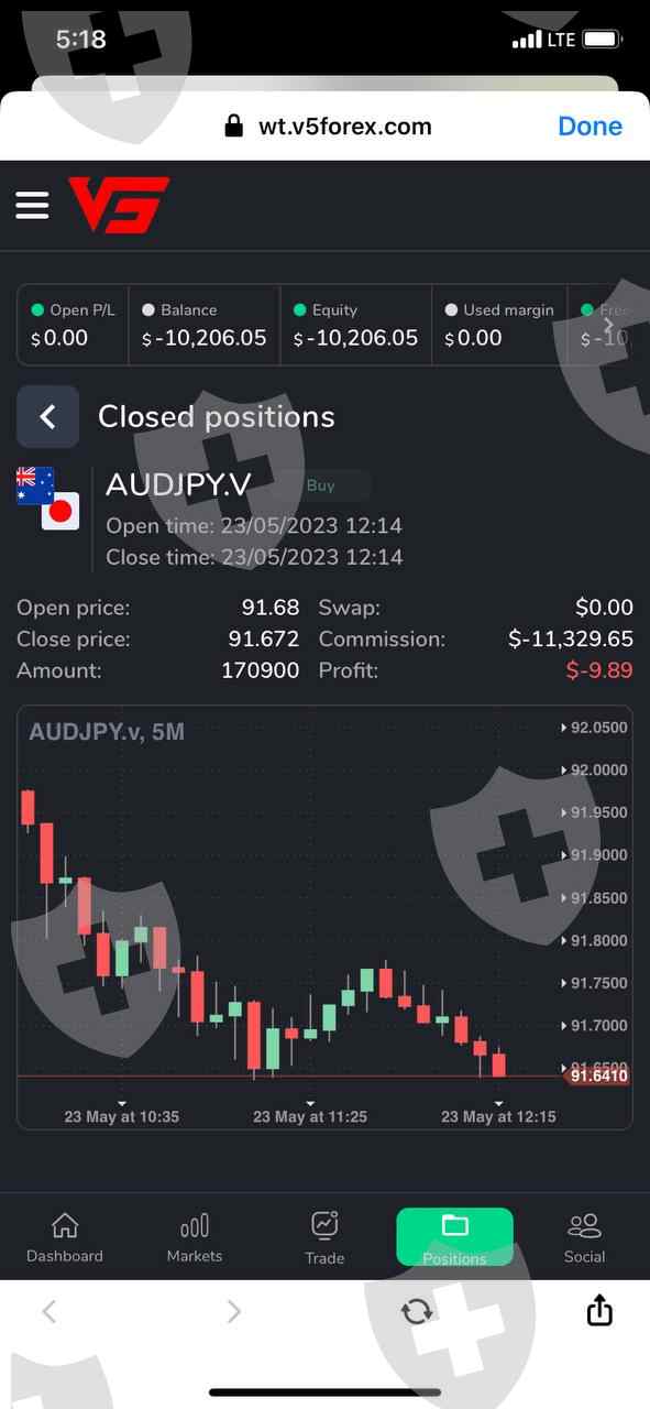 Be careful Everyone ,this V5 Global Forex trading broker is totally a scammer...you can check the facebook feed about thousand of traders have been scam by them...they charge 10 times commission fee against your actual fund 2023/05/23Operating variety: AUDJPYOperating direction: BUYPhilippines Opening time: 17:14Philippines Closing time: 17:17V5 Forex Global totally a Scammer