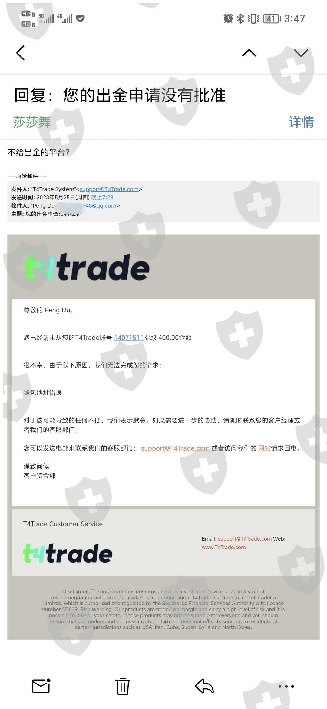 平台多次不给出金,一直找各种理由,联系T4工作人员也是无人搭理,已申请出金三次,一直拒绝。