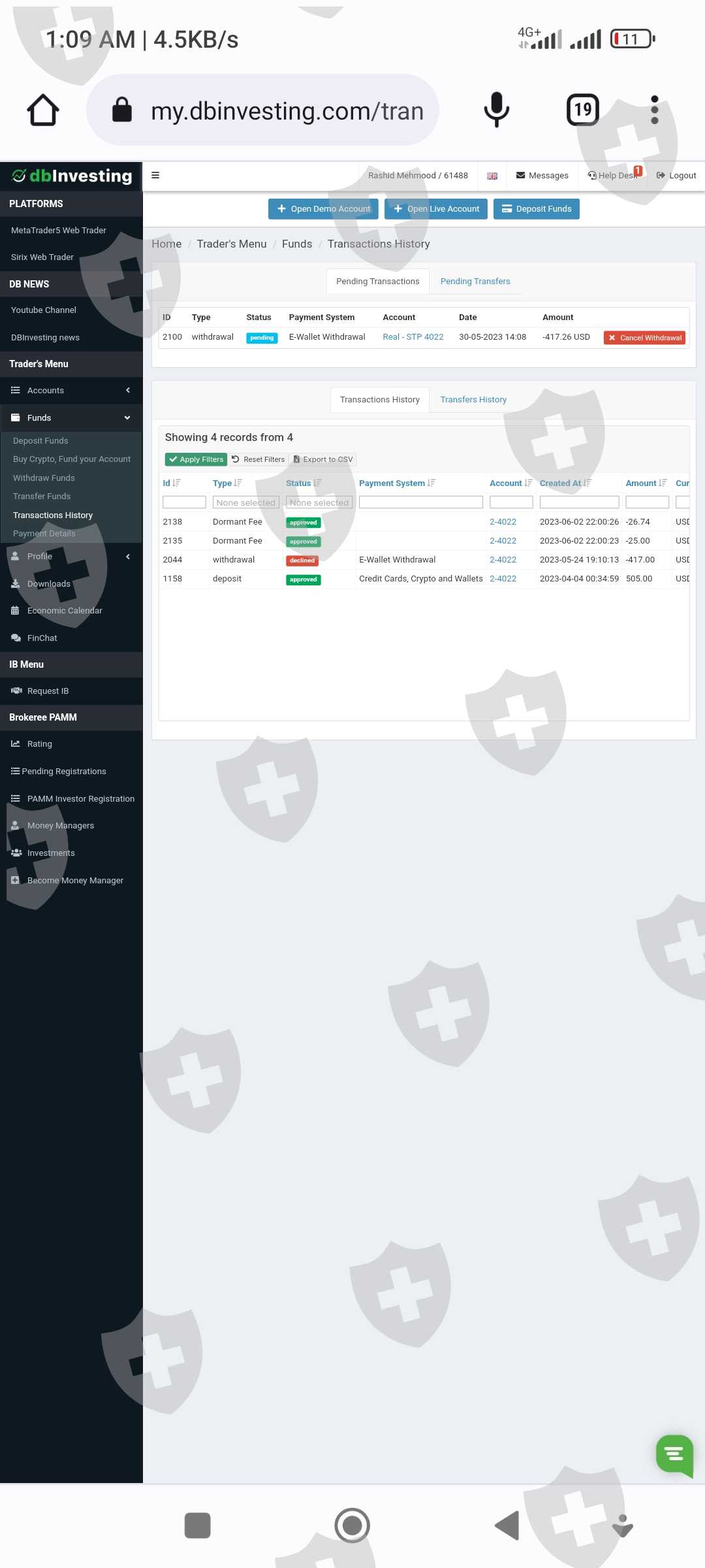 Hello Everyone! DB Investing is a Scammer broker please stay away from this broker. I opened an account with them and made a deposit of $505 I started trading there were huge slippages and higher spreads. Then i decided to make the withdrawal i did and started asking me for additional verification I sent them all the required documents They asked me for my private account details i also sent them and now 5 days have passed. They didn't respond and withdrawal is pending. Today they cut a fee of $25 twice for an inactivity fee. Please I recommend everyone to stay away from this scammer broker they are just playing with clients hard earned money.