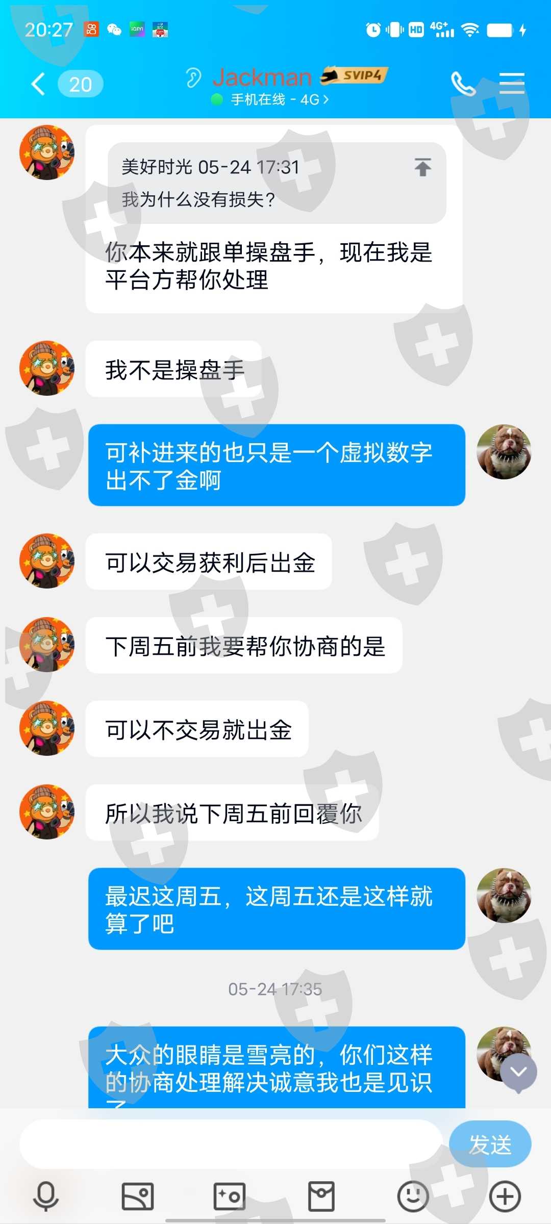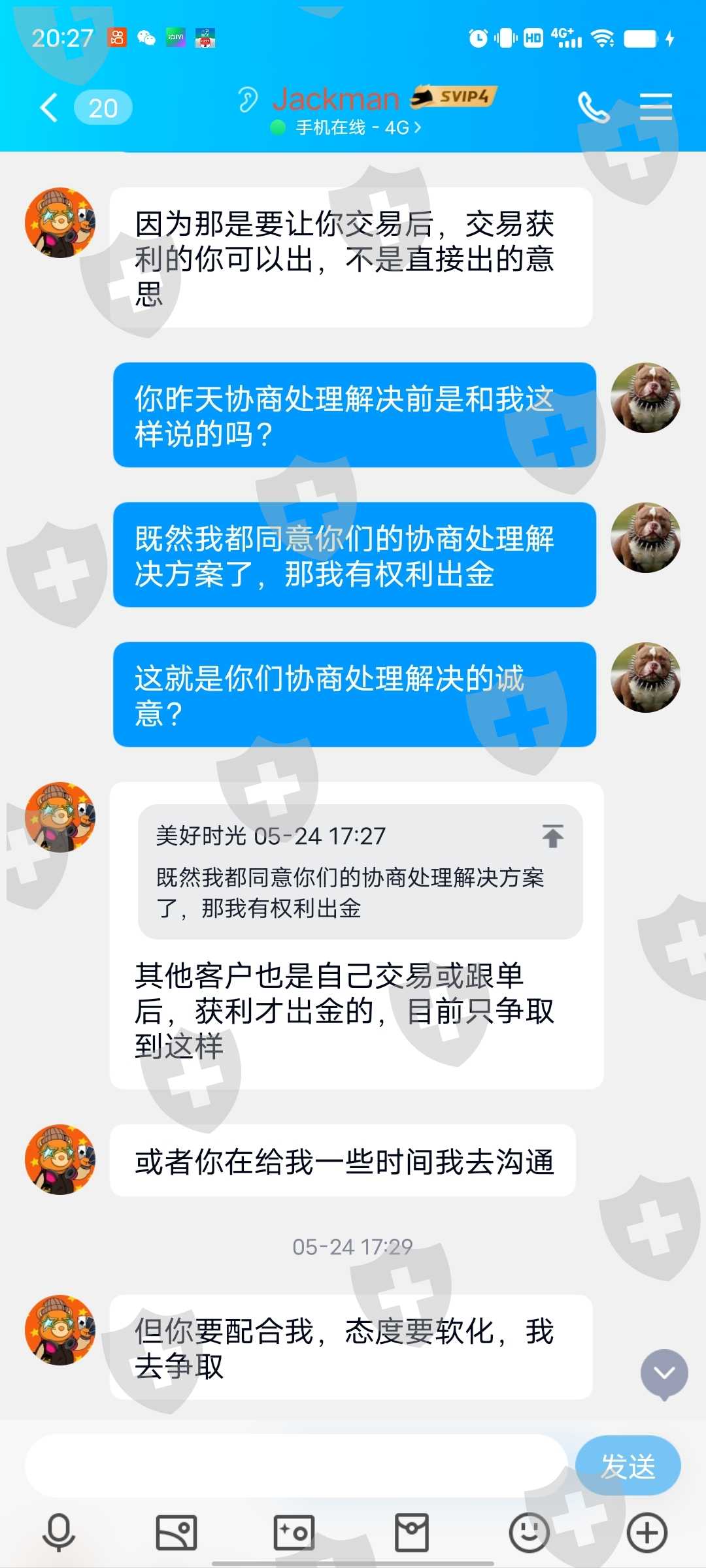 我七千多美金黑平台几个月一直不给出金,我曝光投诉以后黑平台主动找我协商处理解决,只要我同意点击已解决的曝光投诉帖子会给我一千美金,我同意点击解决以后黑平台给我交易账户发送了不能出金的虚拟数字,大家都擦亮眼睛千万不要上当受骗,MOGA是典型的大骗子