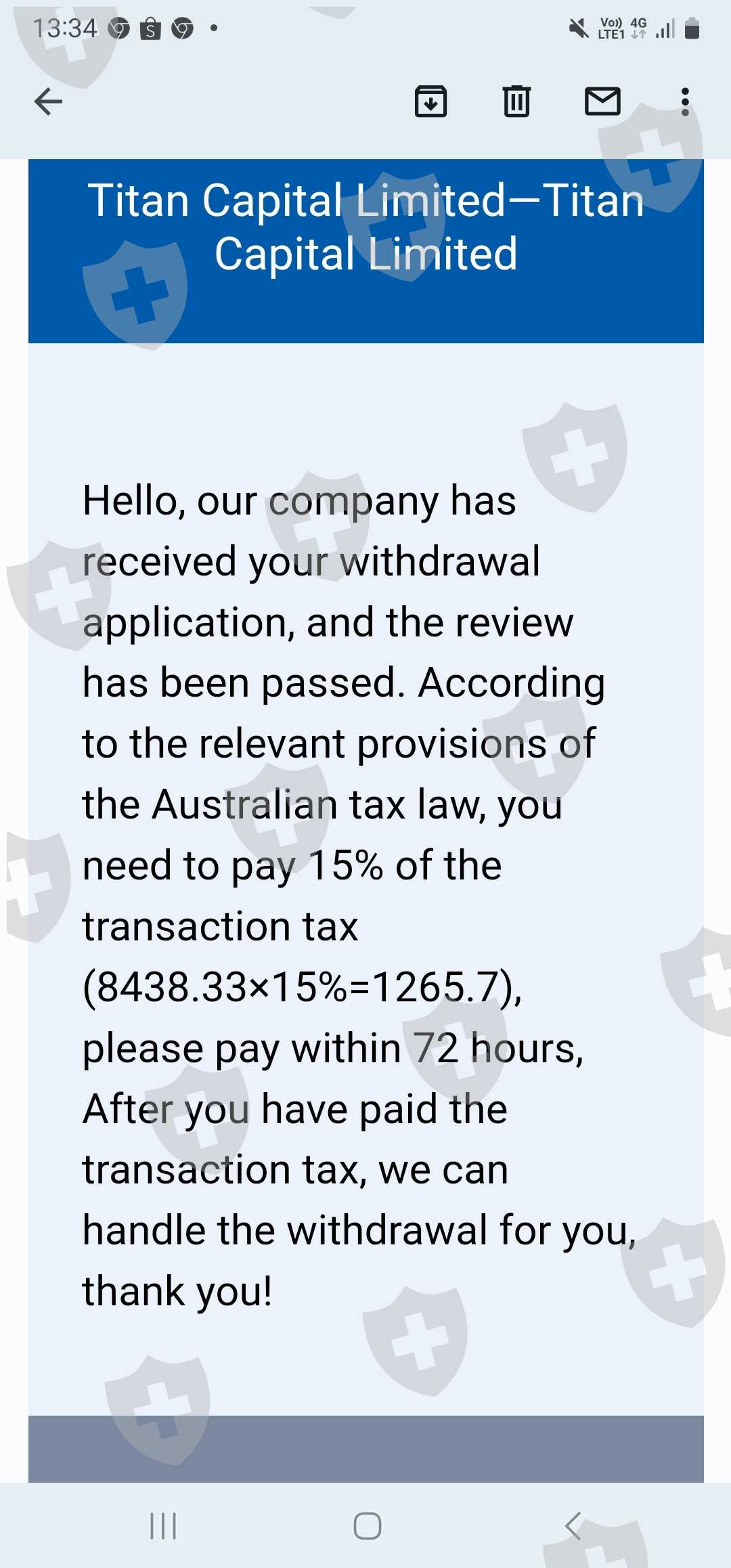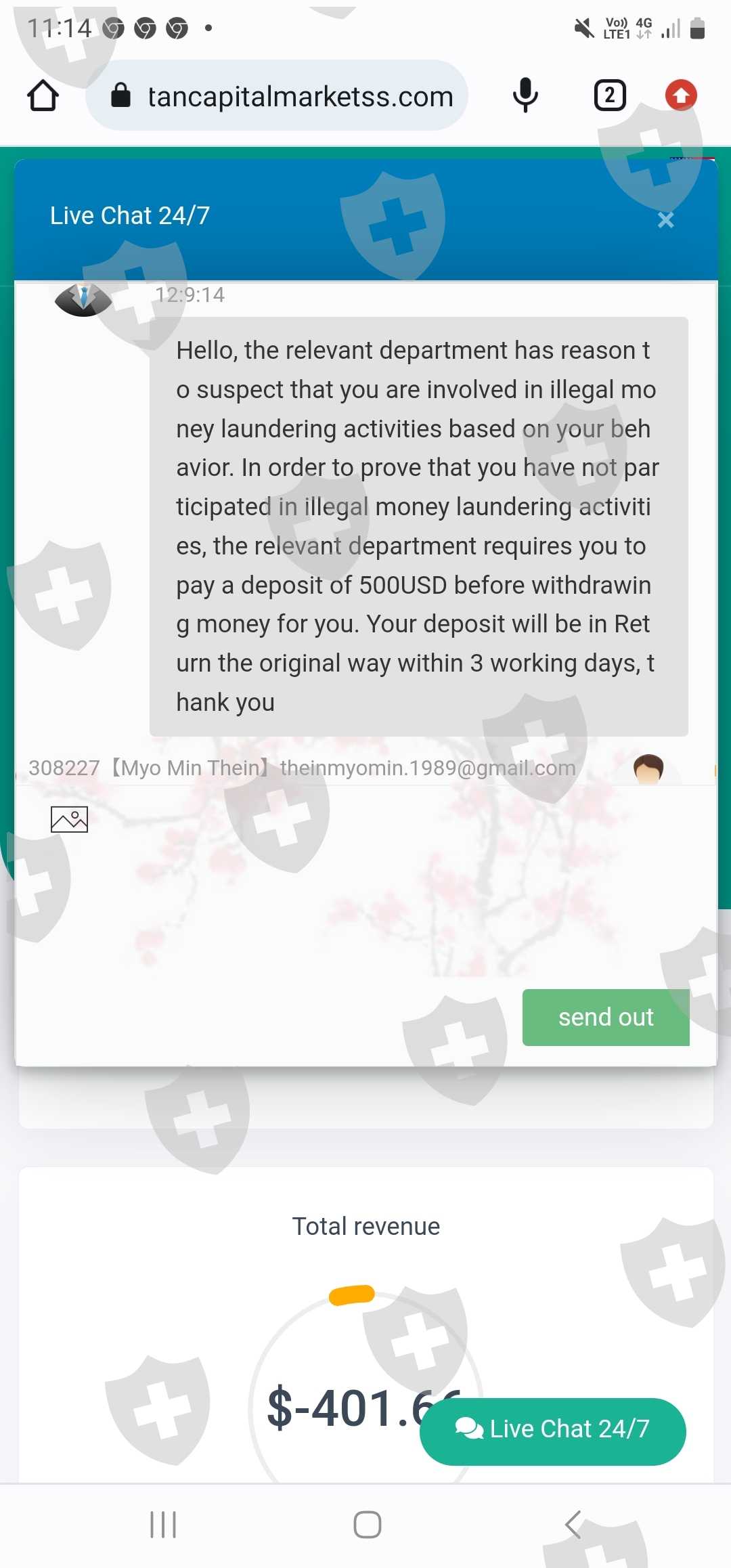 Then they requested to pay 15% tax of amount and then again to pay 500$ for security deposit cos they said the account is illegal and money laundering and the withdraw will receive within 2-3 days.