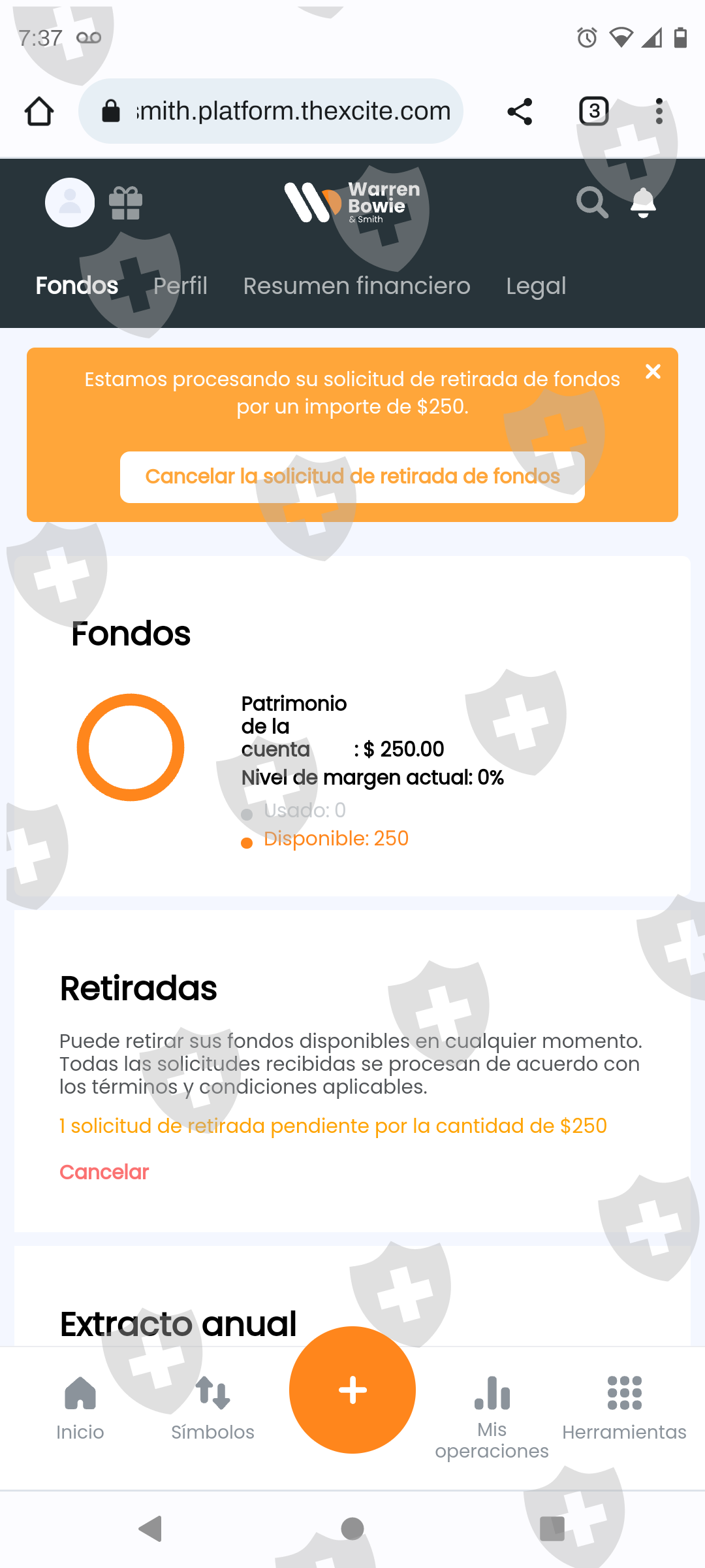 Caí en la estafa de WARREN Bowie & Smith donde inverti $250 dólares, todo bien al inicio: capacitación, llamadas, todo lindo. Al negarme a incrementar mi inversión a 500 y o hasta $1,000 dólares se pusieron groseros, a lo cual decidí retirar mis fondos afortunadamente sin realizar ninguna operación, me encuentro con la negativa de esta compañía de regresarme mi inversión, ponen un sin de pretextos.