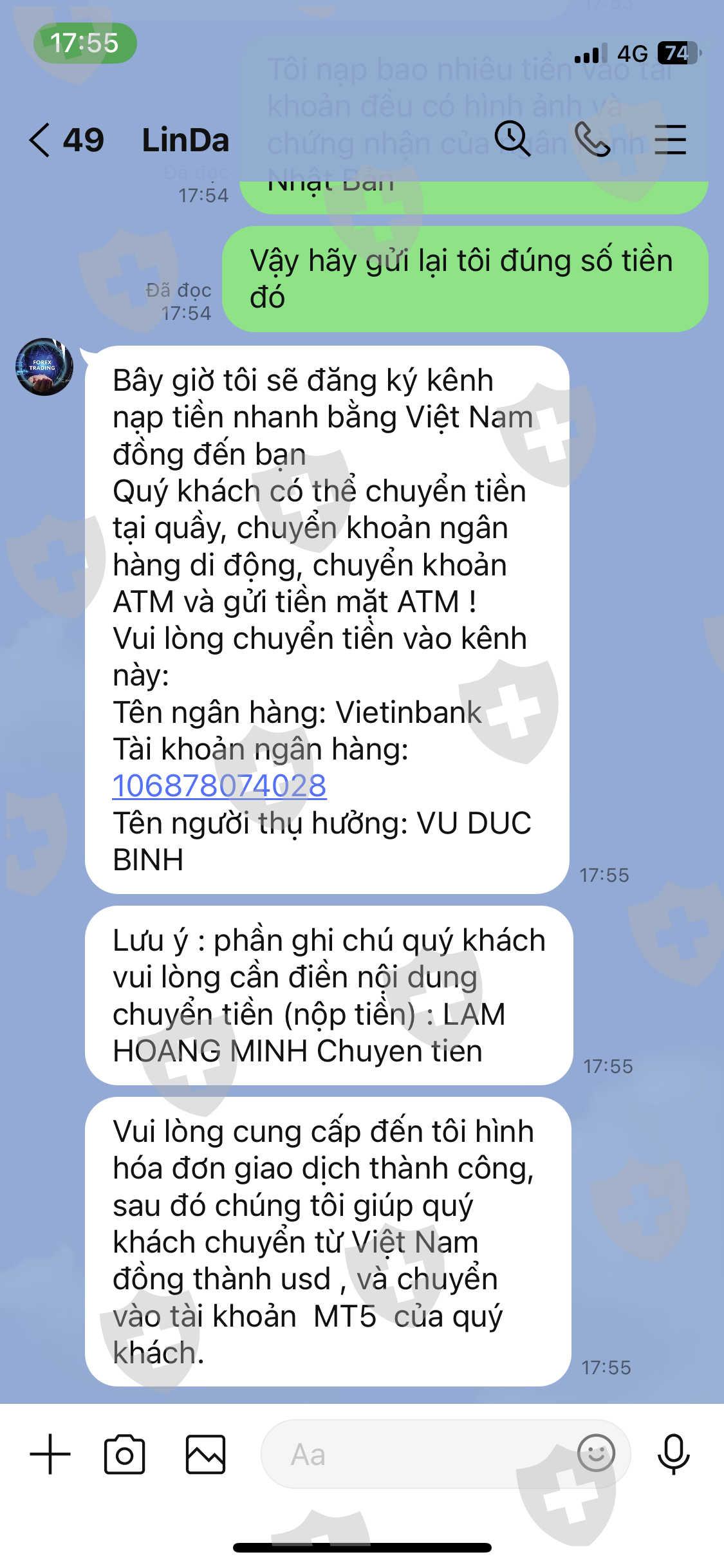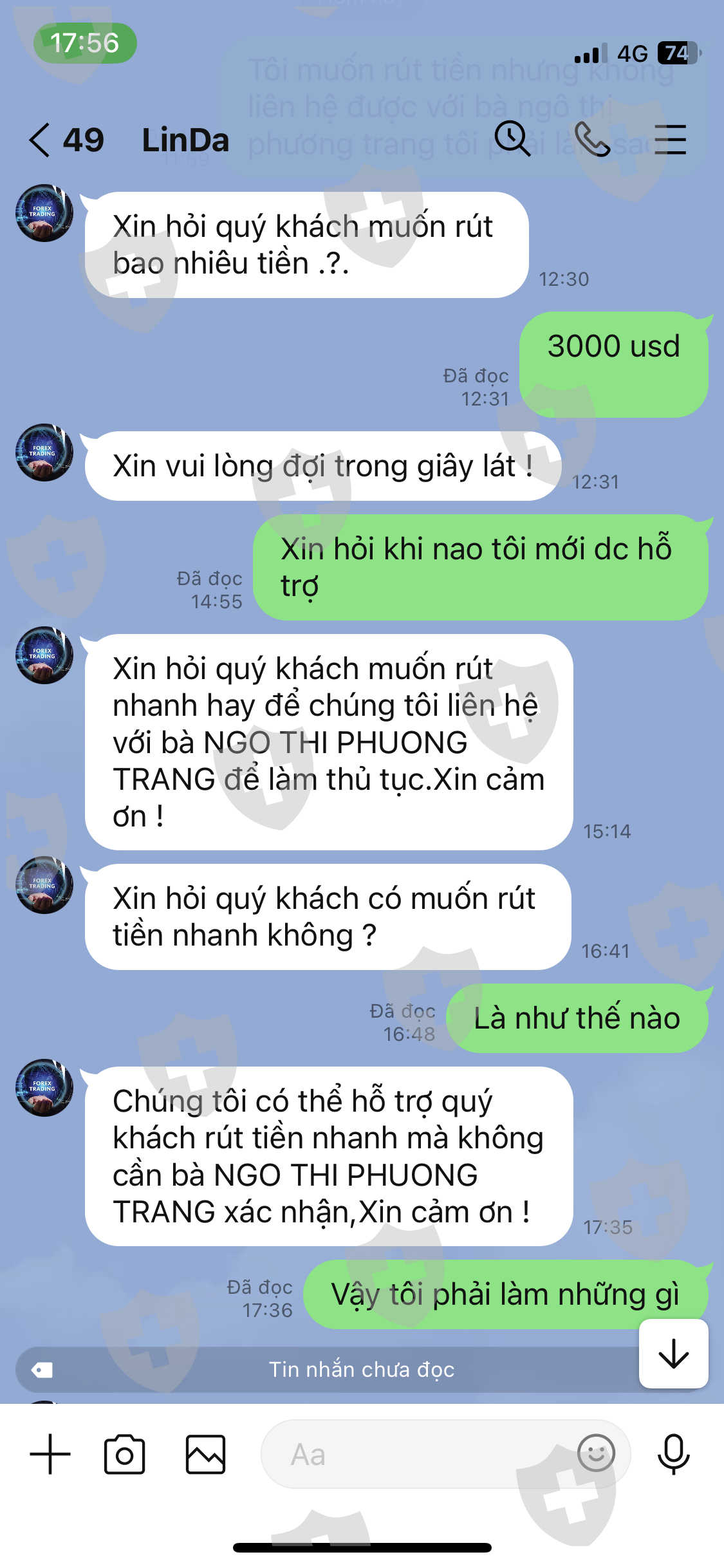 khoảng đầu tháng tư tôi có quen 1 người bạn gái qua mạng, người đó giới thiẹu tôi vào sàn ,hơn một tháng có lãi , tôi làm lệnh rút nhưng cskh bắt tôi đóng tiền bảo hiểm đặt cọc gì đó vì tài khoản chính chủ của tôi có 2 người nộp tiền là tôi và bạn gái cùng hỗ trợ. tôi thấy có dấu hiệu lừa đảo nên đã tìm hiểu thì biết phần mềm mt5 cũng là giả .tôi đang sống và làm việc bên nước ngoài bao nhiêu tiền tôi gửi về đều có xác nhận của ngân hàng vậy tại sao k cho tôi rút tiền của mình.lúc đầu tôi tưởng cskh là người ngoại quốc nên phải điền tiếng Việt rõ ràng( để google dịch đúng) nhưng giờ tôi viết tắt thì họ vẫn hiểu . có dấu hiệu lừa đảo