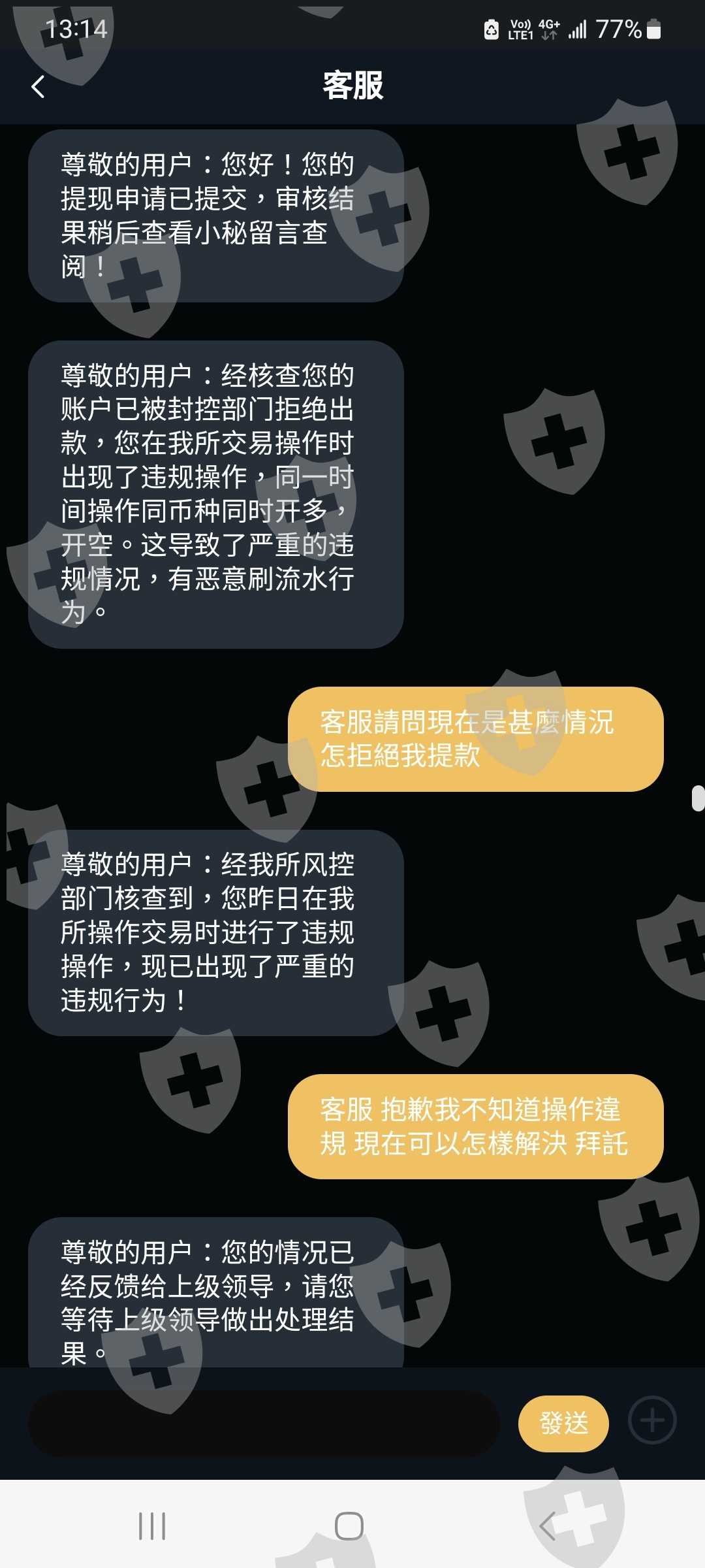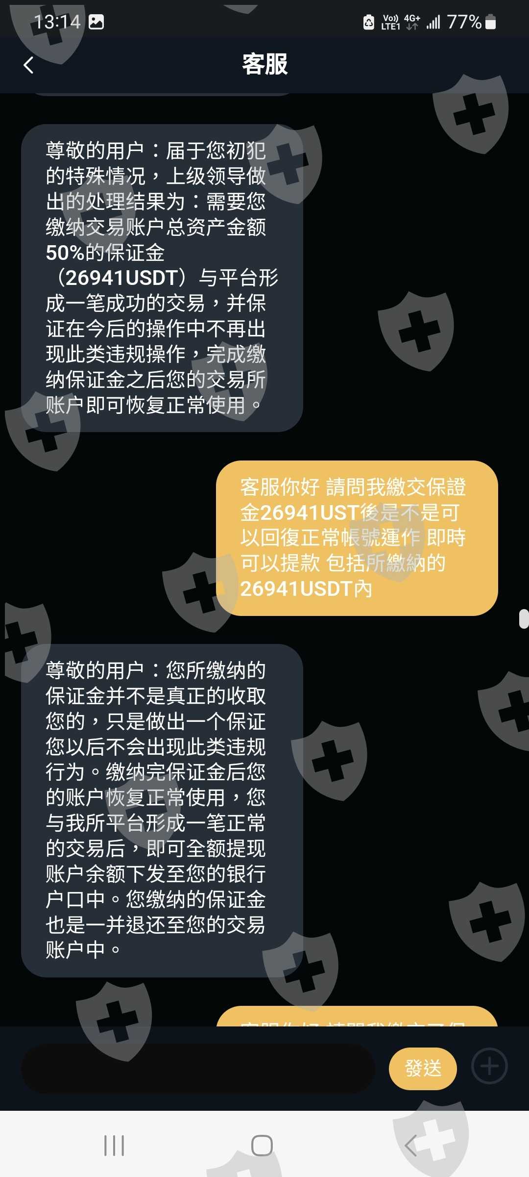 提現沒法出金 先繳稅款 後來操作違規要繳總收益保證金50% 這是詐騙集團平台