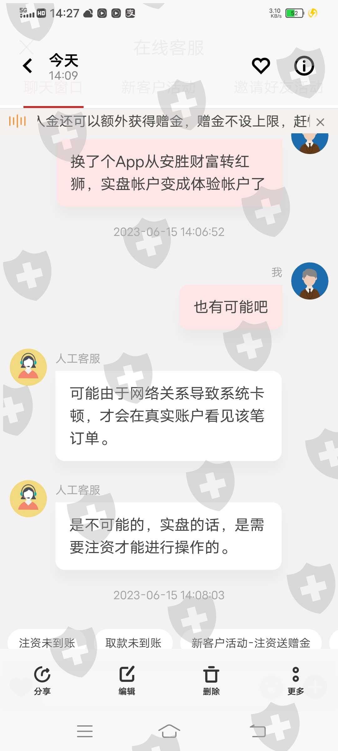 实盘帐户安胜财富有1千多未平仓单,忽然消失转到红狮集团模拟帐户