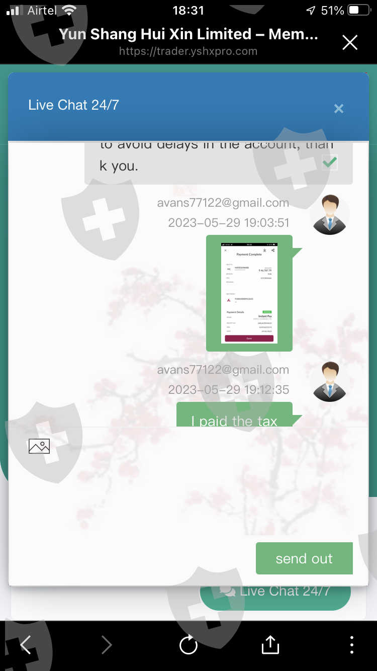 泰坦资本有限公司(Titan capital limited)现已并入云尚汇鑫有限公司(Yun Shang hui xin limited)。 我在云尚汇鑫有限公司和泰坦资本有限公司开立的账号分别是730007和308134。我投资交易是为了盈利,但它不让我出金。 当我申请出金2800美元时,他们要我交 20% 的税,我也照做了。然后他们说我交易不当,在一天内交易了多次。 客服要求我再存入 500 美元用来审查我的帐户和出金。他们不让我出金,还一次又一次地朝我要钱。我总共存入了 1800美元和566美元的税。我交易并且赚了 2831美元,但我还没有出金。如果我揭露他们公司,他们就会对我提起法律诉讼。请帮我出金。