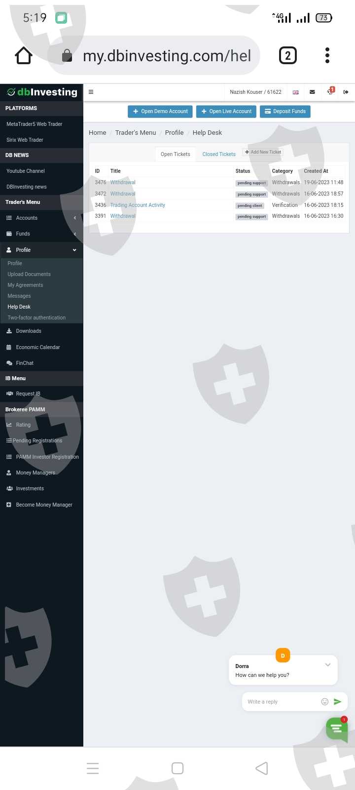 诈骗警告...你好,我叫Nazish Kouser。我在DB Investing开了户入了金,但是点差特别高,订单处理的也不好,他们终止了交易,造成损失。所以我决定提款,但他们要求我进行进一步的验证,其实是为了延迟出金,我提供了所有证明文件,已经7天了,他们还没有处理我的出金申请。附上证明。大家千万不要在骗子经纪商开户,以免损失辛苦赚来的钱。我还在尝试跟他们联系,但还是没人回应。