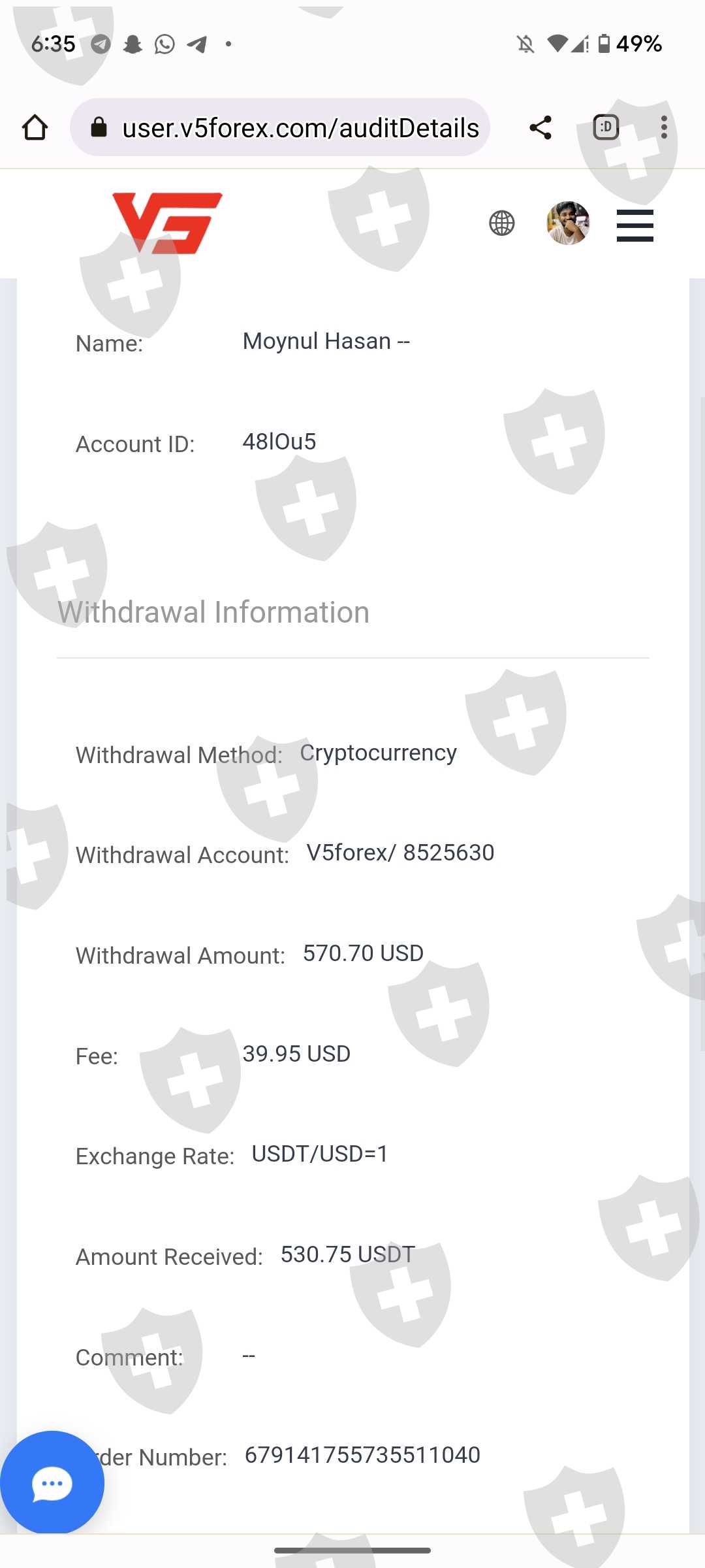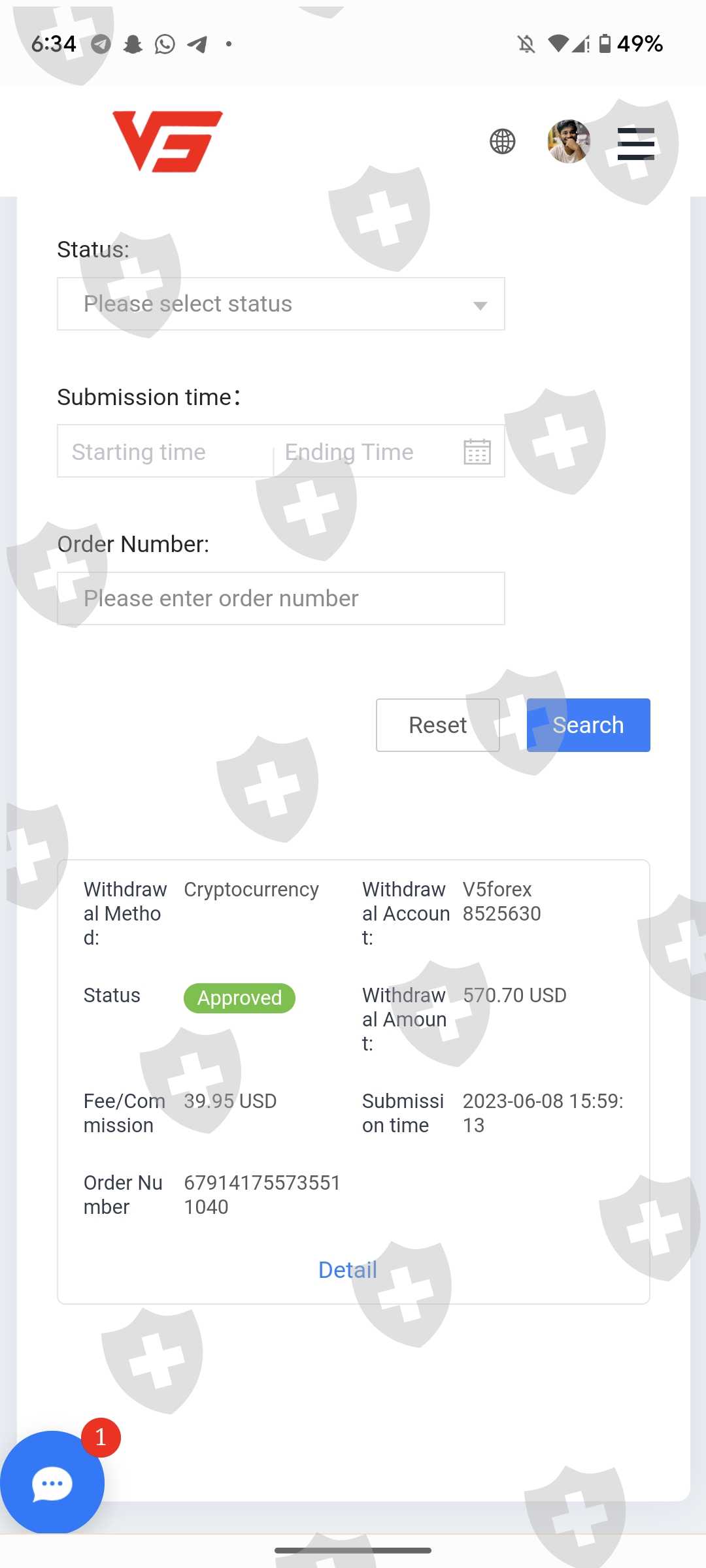 我是一名交易员,同时也是v5 forex global 的会员之一,为什么从 6 月 8 日到现在 2023 年 6 月 20 日还没有收到我的第一笔出金款项,金额为530 美元。我的帐号是 8525630,请帮助我出金。