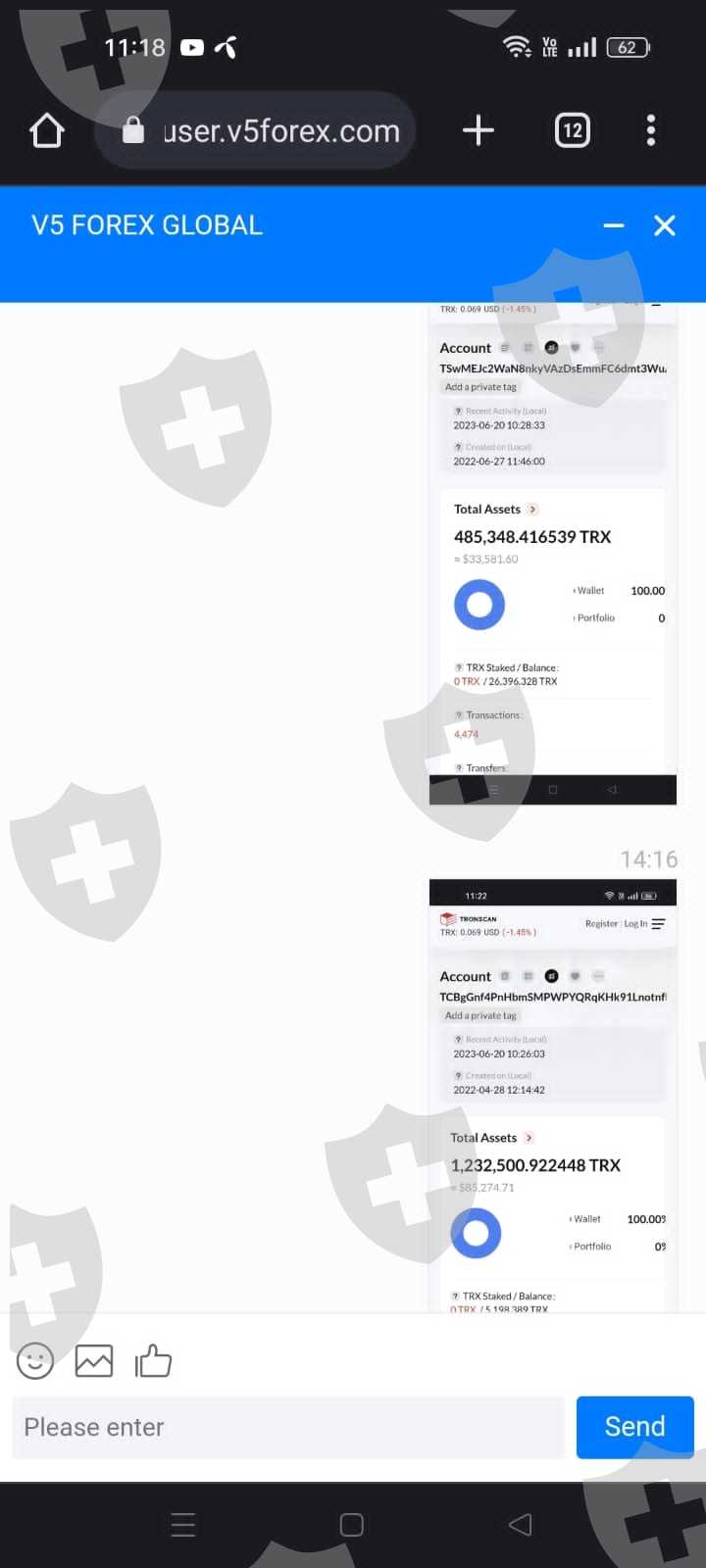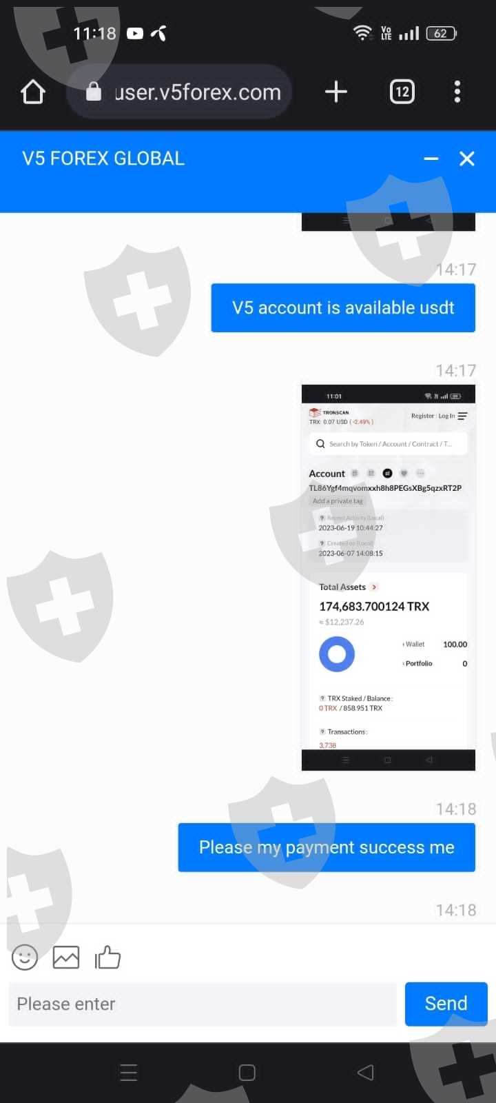 I want to file a case in the name of V5, please help me V5FOREXGLOBAL Limited broker address please help Their helpline has no word at all 39 of their deposit address are still not paying us even though they have available USDT at each address
