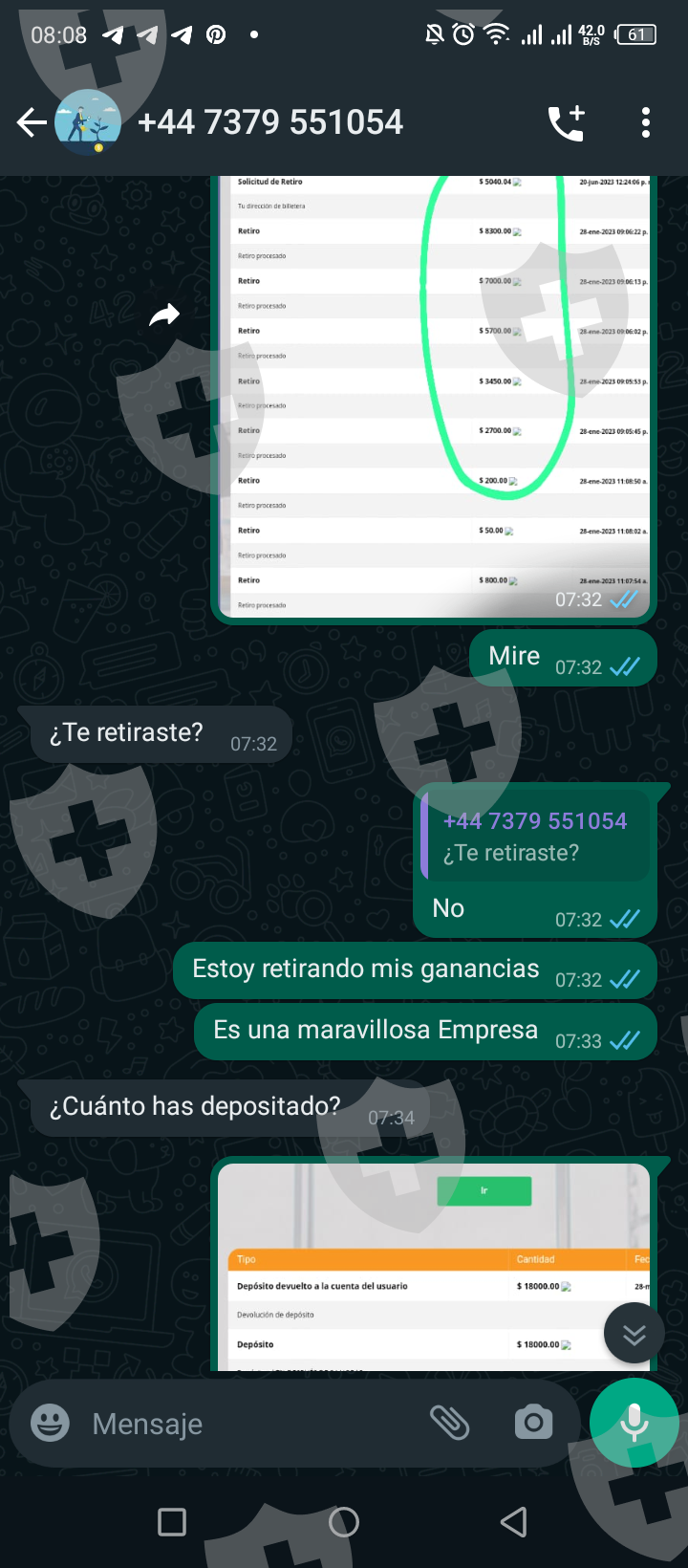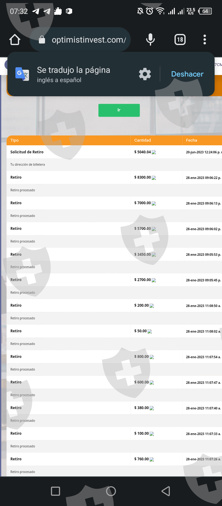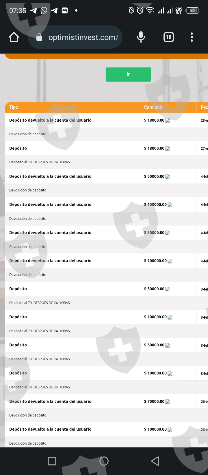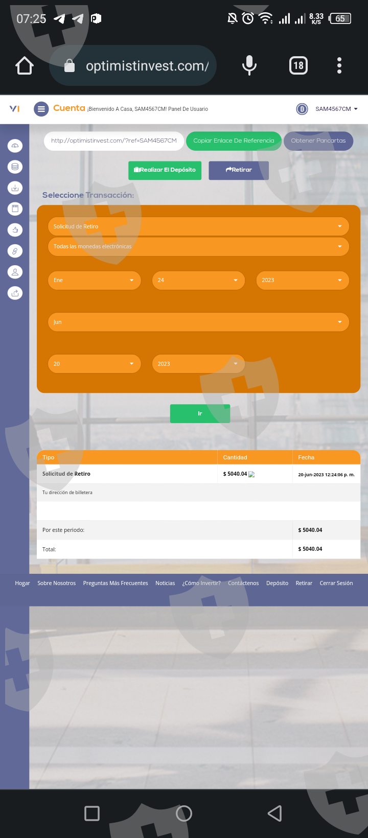 Hice una inversión de 18000$ y luego hice de 5000$ y al momento de retirar no me dejó , aquí tengo pruebas de pago de chat nombre de la empresa no paga solo estafan ala gente , también le escribi a soporte no me responde ni en WhatsApp en nada que me responden.