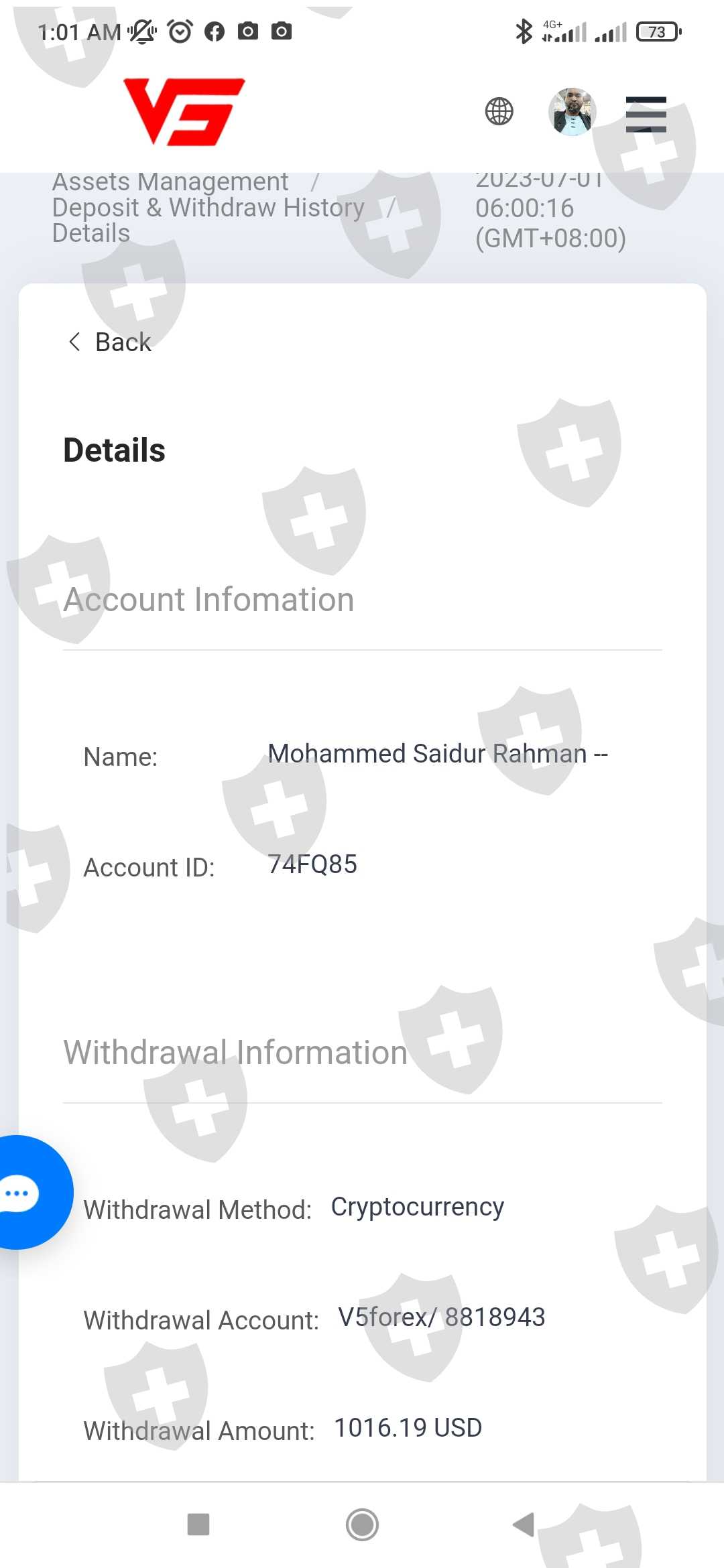 sir or mem,my account number is 8818943, i make withdrawal 23.06.2023 1016.19 usd. get the massage by email withdrawal success but still not add money my binance account. pls help me.
