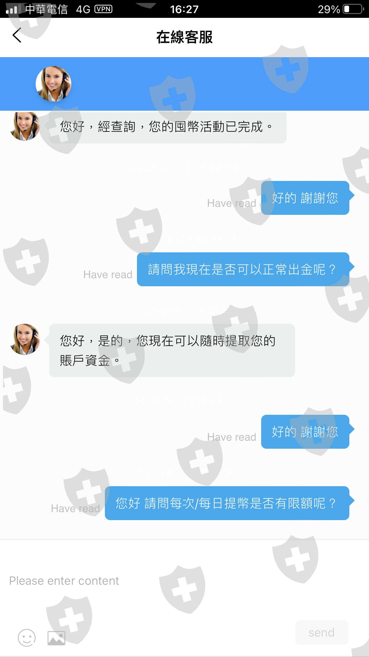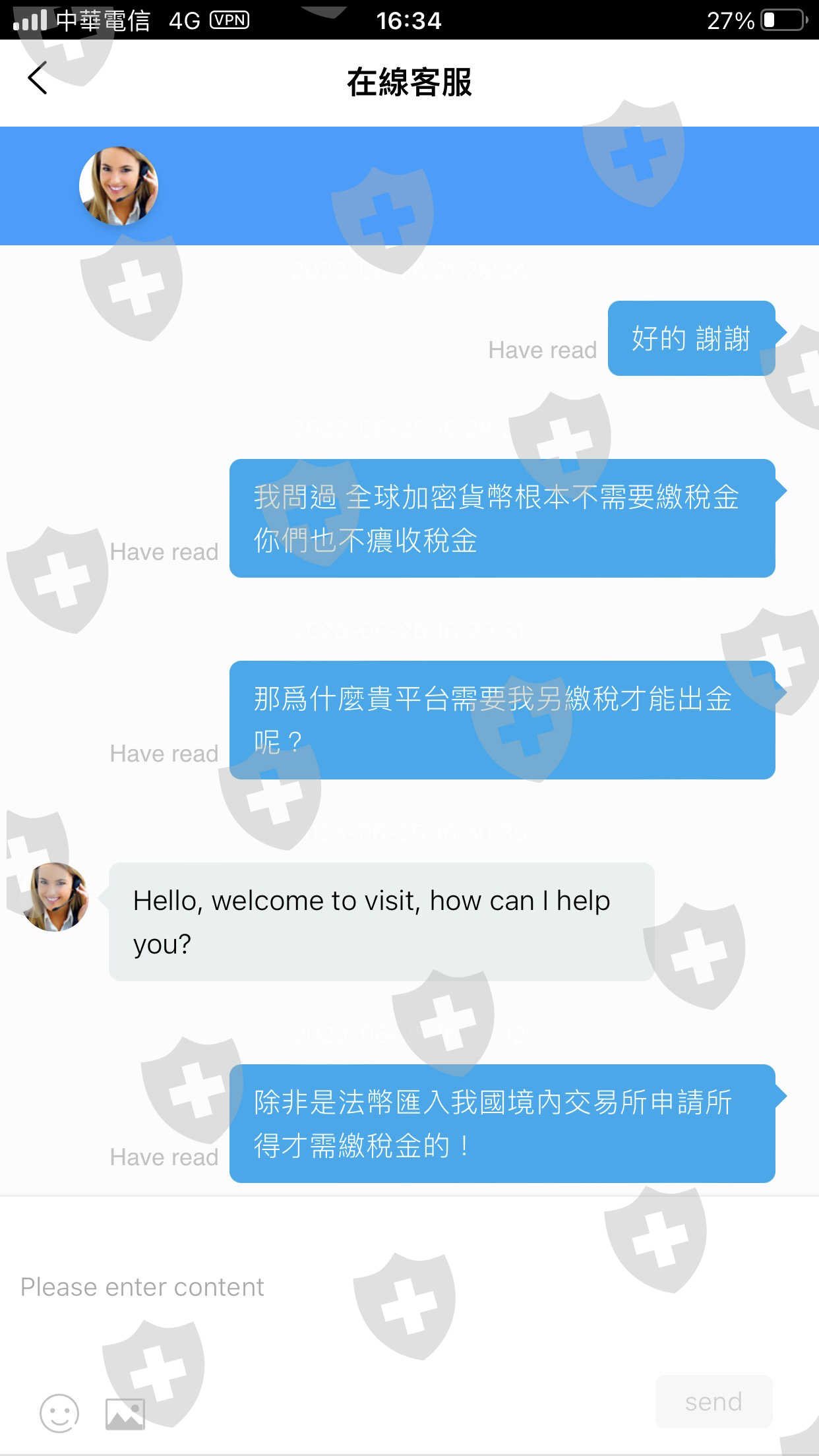 今年四月底在IG 上認識一位網友接觸到這個平台剛開始小小的入金有賺到錢,後來朋友就一直神勇建議我加碼我從一開始的幾萬元台幣到30幾萬台幣網友鼓吹,我不斷入金到將近百萬台幣購買USDT有小小賺到錢,中間也有申請出金也正常,直到上個月5月25號這個朋友鼓吹問我參加這詐騙平台的囤幣活動這個網友他說他同一天也參加這個活動。因為是第一次接觸考慮了幾天,後來朋友建議我參加180枚ETH的囤幣活動活動期間是從5月25號到6月24號截止,因為我第一次接觸,所以沒有概念可是網友就一直鼓吹我趕快報名,但我報名完成之後問這個網友180ETH是多少USDT結果當網友跟我講說這樣子我帳戶裡是11萬U S D T這樣還有差220,000U S D T才能完成活動!我整個傻眼才知道我竟然還要補這些金額進去網友說他也會幫我一起想辦法補畢竟是他要我參加活動這一個月內我到處向朋友借錢甚至賣的車子辦貸款,而這位網友他陸陸續續説要幫我完成活動入金幾萬USDT。直到六月24當天終於補足也完成活動,我詢問平台客服是否完成活動可否申請儲金了客服回覆我確定我已完成活動隨時可以申請提領出禁,於是我申請全部儲金提領,結果被駁回拒絕我又第二次申請分成三筆各11萬U S D T出金仍被拒絕駁回,於是我再詢問客服,客服竟回說我的帳戶提領依照國際納稅標準超過20萬U S D T的額度需繳總提領額度的16%( $54,289 U S D T)!當下我發現這是哪來的規矩? 180枚ETH囤幣活動總額共339308USDT本來就會超過。(我自己的部份就14萬USDT)我問網友交易所要求我繳稅這位網友回答我說稅收是正常的。只是他沒有想到稅收的問題!我再次詢問客服可否從我的資產扣除客服說不行根據全球貨幣加密條約我必須在7月2號前繳稅。於是我跟客服留言說沒聽說過交易所這邊會需要繳稅的。要繳也是匯入我國境內給我國政府繳的稅!當下我驚覺這簡直是詐騙交易所平台,這個網友也是是詐騙集團成員!爲了完成活動我該賣的賣還到處向朋友借錢!現在拒不出金!一隻牛扒一層皮不夠,還想要繼續要把人啃盡!現在我已經沒錢了,還背上負債竟然還要我繳稅。