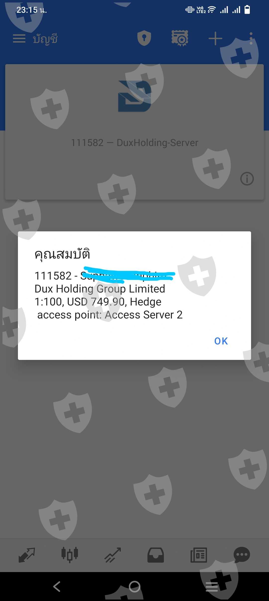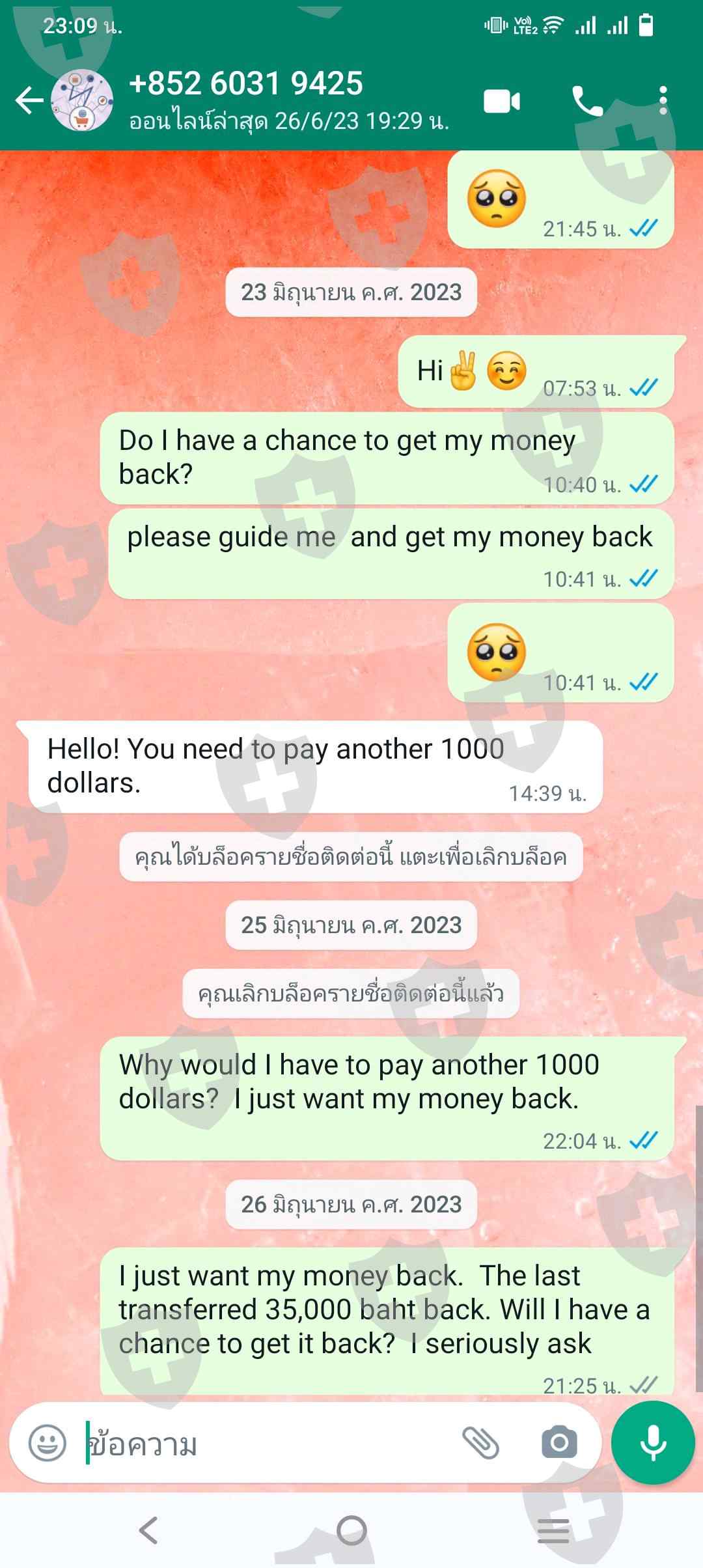 ทำการฝากเงินเข้าไปแล้วแต่ไม่สามารถซื้อขายบนแพลตฟอร์มได้ต่อไปและเงินไม่เข้าระบบเมื่อถามกลับไปว่าจะมีโอกาสได้เงินคืนไหมก็จะยังมาให้จ่ายเพิ่มอีก1000usdและยังคงมีเบินค้างอยู่ในนั้นไม่สามารถถอนออกมาได้เลย