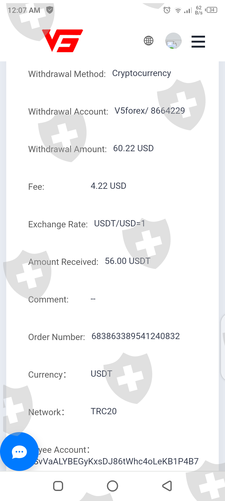 V5 forex不同意我56美元的提款请求。