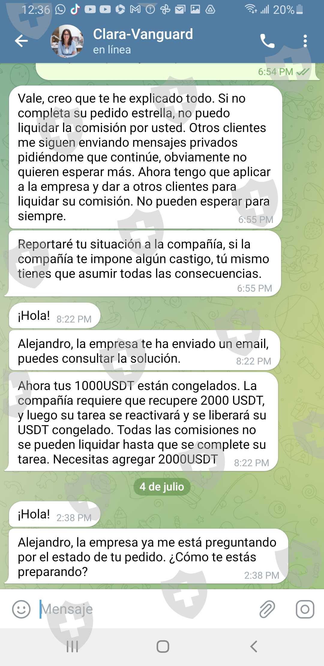 人们利用别人的经济状况,这一切都是从他们通过 WhatsApp 联系我开始的,他们告诉我一家加密货币交易所的领先公司,然后他们给我发了一个 Telegram 的邀请链接,告诉我我只需购买通过bitso或binance加密货币并将其转换为USDT,然后将它们转移到他们要求我下载的数字钱包,称为bitpreco,从那里一切都很好。我第一次购买的是450比索或相当于25美元通过已经将它们存入数字钱包,他们将首先返还 550 比索,即 450 比索加上佣金,如果我收到这笔金额,收到后我将通过数字钱包将 25 USDT 转入他们的数字钱包然后他们要求我存 60 美元或相当于 1080 比索的押金,我照做了,他们还给了我 1250 比索,一切看起来都很好,利润也不错,但后来他们要求我存 100 美元,我存了,但后来他们告诉我。他们没有 100 美元的订单,只有 300 美元,所以我存入了它们,从那里他们告诉我,他们已经用完了 300 美元的订单,我需要再存入 500 美元,当我存入时,他们告诉我,他们我只有 1000 美元的订单,我必须另外存入 200 美元才能获得 1000 美元,现在他们会用我的佣金清算我,这将是 25% 的佣金,当我的账户中有 1000 美元时,他们告诉我,我已经进入了明星任务的区域,我必须再存入2000美元,使之达到3000美元,并且我将获得32%的佣金,但我需要在当天完成。我告诉他们我没有这笔钱,他们告诉我,然后他们将冻结我的帐户,我将无法指望我的钱,直到我存入 2000 美元,我告诉他们我不能,因为我出去进行那笔交易,然后我想取回我的钱,但我不能,我的账户里有钱。