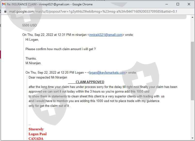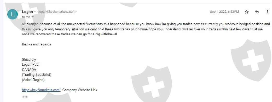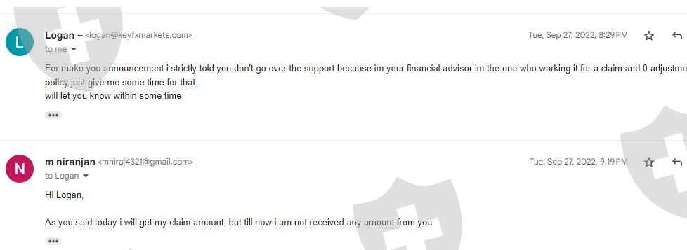 So please don't believe this person logan@keyfxmarkets.com as