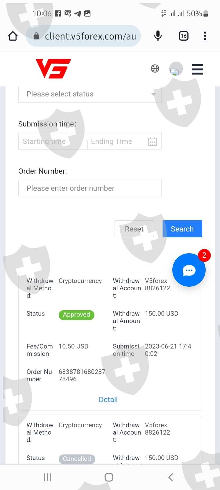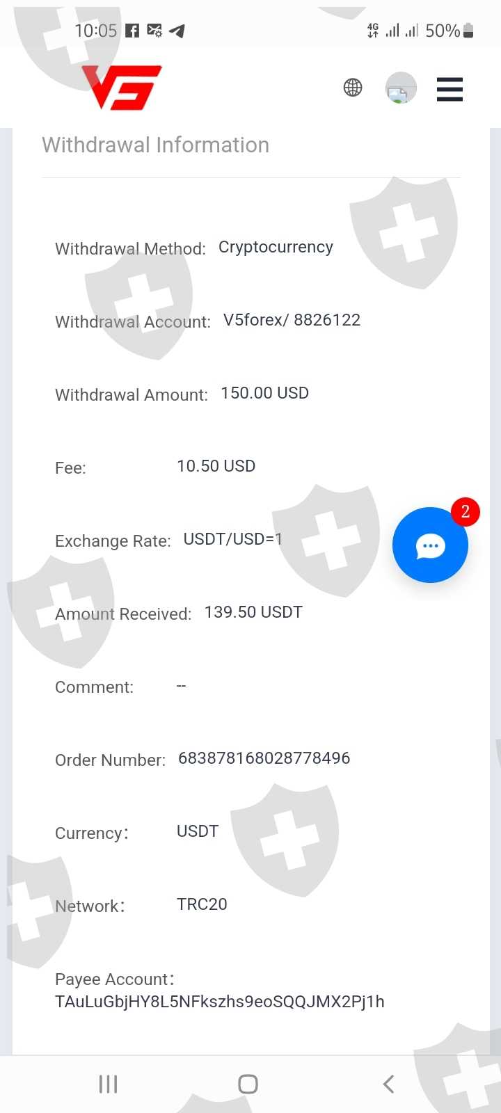我没有从V5FOREXGLOBAL收到我的 150 美元提款。我可以拿到我的钱吗?