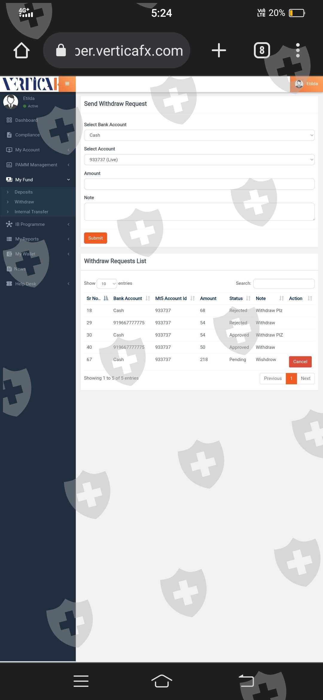 verticafx ltd is a scame not getting withdraw from last 2 week deduction of USD done but not sent the amount in banking .. be awere ... deposit 100 USD and my profit of 290 USD and 218 USD still pending I talk to support also but no response from there...