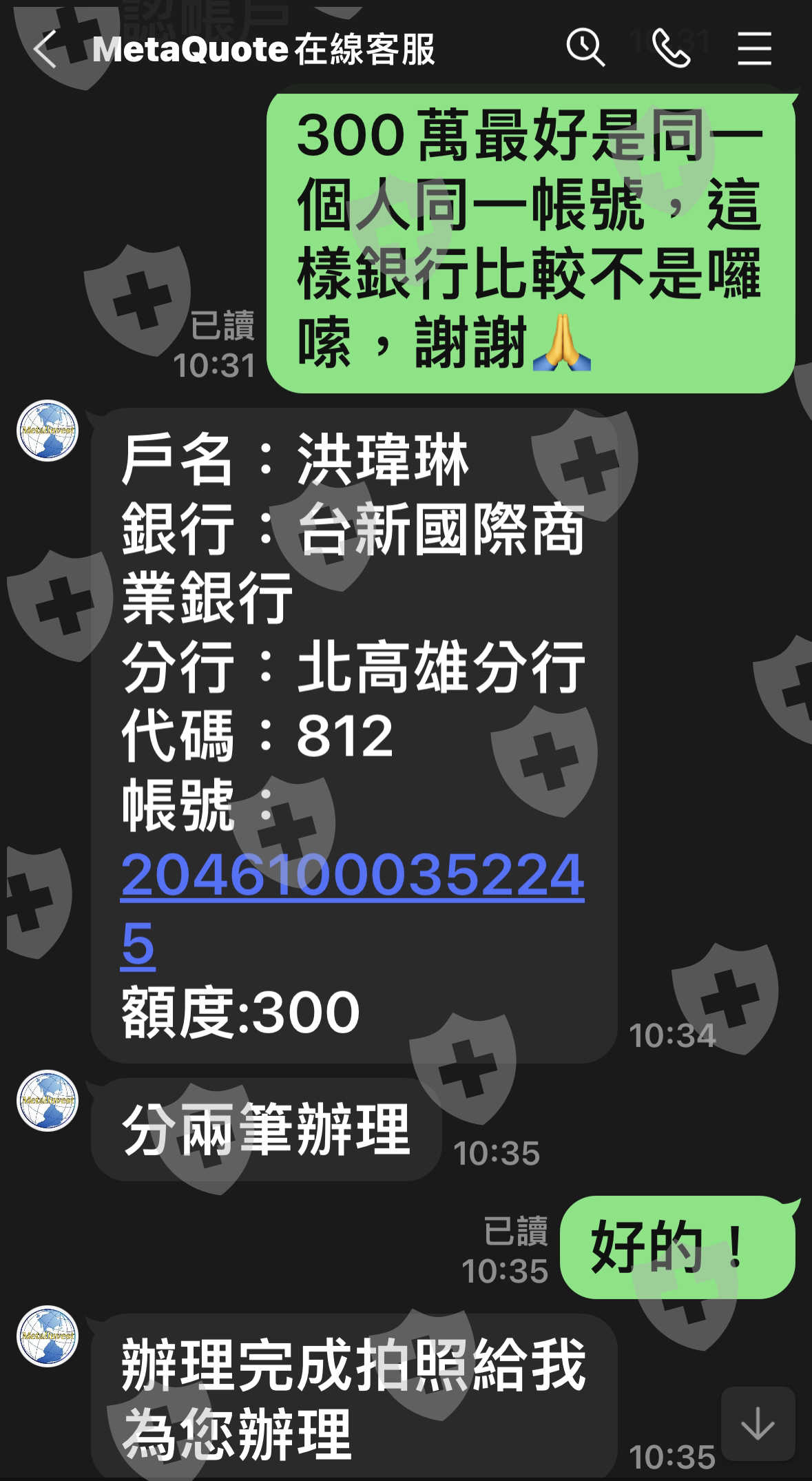 金的帳戶,全部都是人頭帳戶,只要你一入金,錢馬上就被其約定帳戶轉帳轉走,速度很快,接下來如果你要申請出金,那更是困難重重,最少