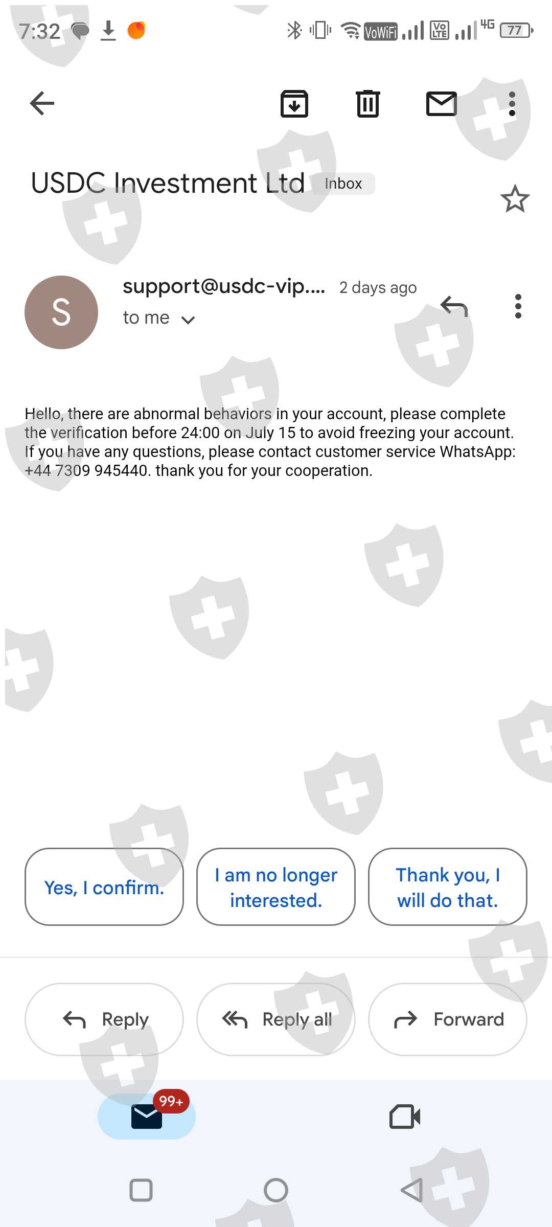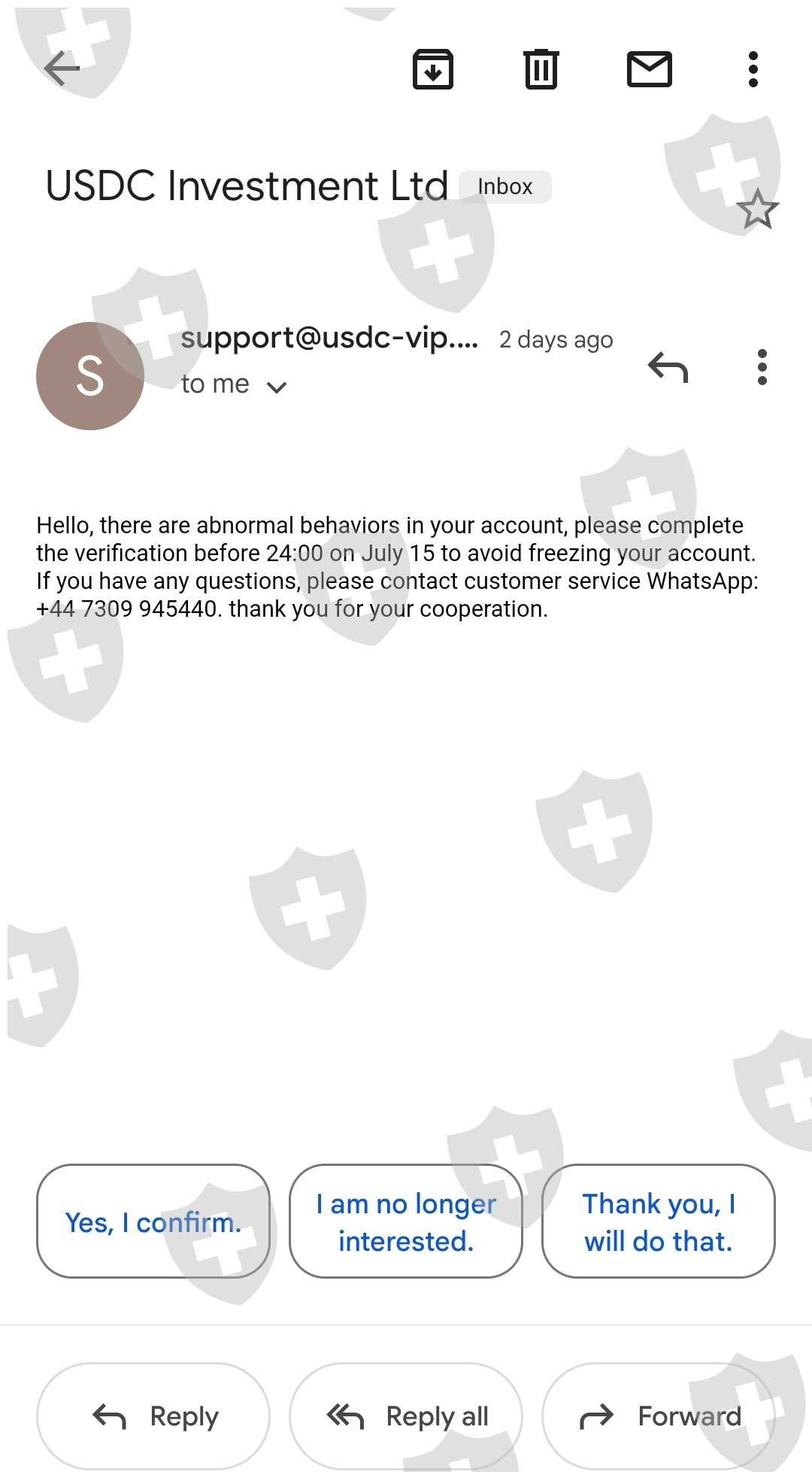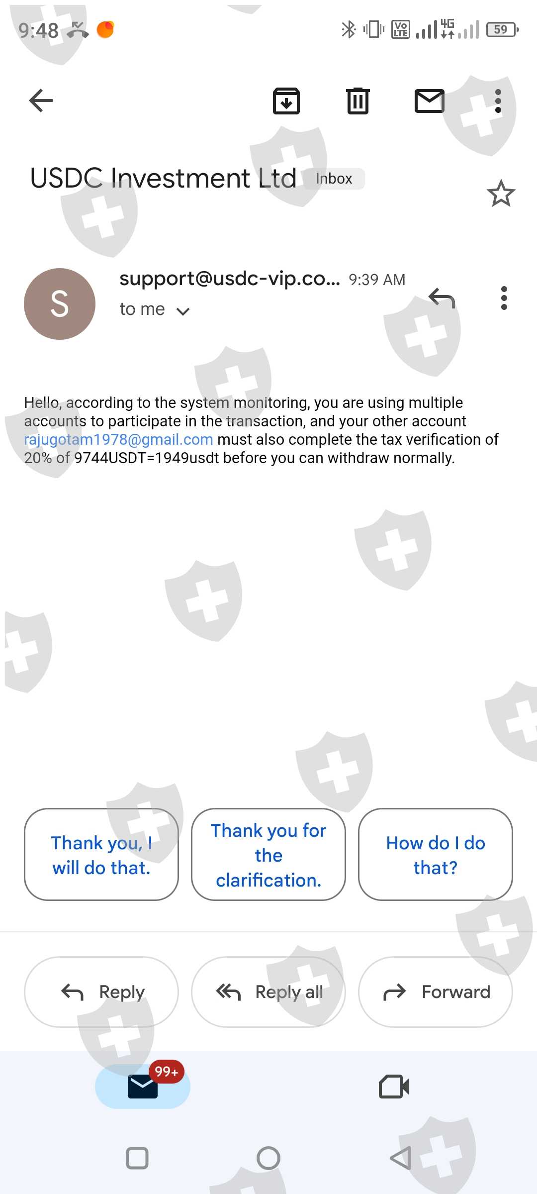 But now usdc has freeze our account by saying That i have to do tax verification then I had done this verification by recharging of usdt 20% of amount which I have in account after that they stopped my withdrawal process and then company again ask for 10% of deposit in my account to have normally withdraw otherwise they freeze my account also they are saying some abnormal behaviour seen ,but I want to ask that what behaviour I had done wrong give explanation about that .I have lost my all money in this ,now i have to go cyber police and I have no option left