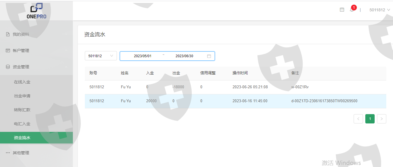 我在外汇平台上交易 OnePro两个多月了。我的交易账号是:5011812 我进行正常交易 OnePro。我可以显示我的交易历史和存款历史。这是我第二次退出,我无法退出。第二次提款7000美元于6月30日存入,已拖延两周多仍未扣除。由于交易所正在考虑延迟,一方 OnePro没有给出任何其他答案。作为外汇平台,提现利润很重要,账户里还有18,000美元。我现在的抱怨是经纪人先处理了我的 7000 美元提款,然后是我账户中的余额。我也希望平台能帮助我联系 OnePro处理,奉劝大家远离这种交流! !