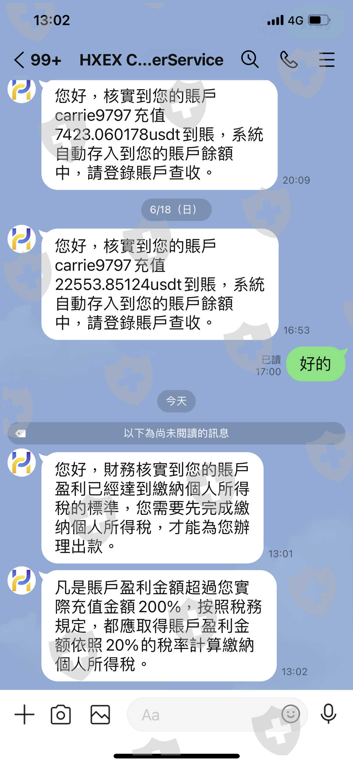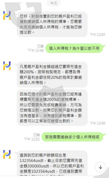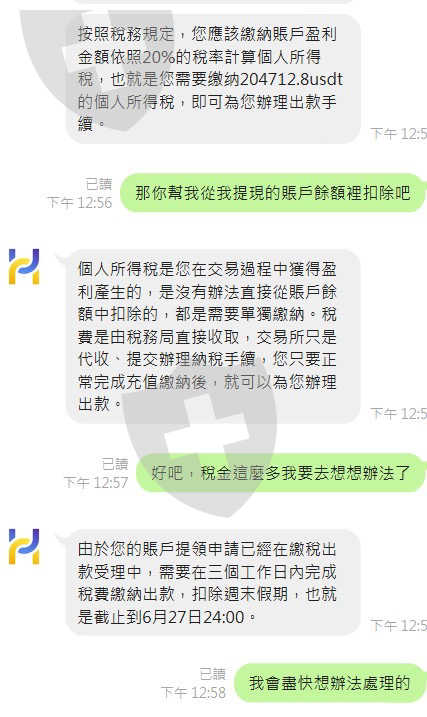 網路交友被詐騙投資虛擬貨幣的USDT,對方先利用將資金轉入合法的MAX,再買入USDT轉入Bitpie(比特派錢包)再用連結鍊轉帳至HXEX帳戶內並進行虛擬貨幣投資交易,等獲利要提領時HXEX 要求要交付20%的個人綜所所得稅,未能於期限內繳交稅金就永久凍結帳戶、無法出金。