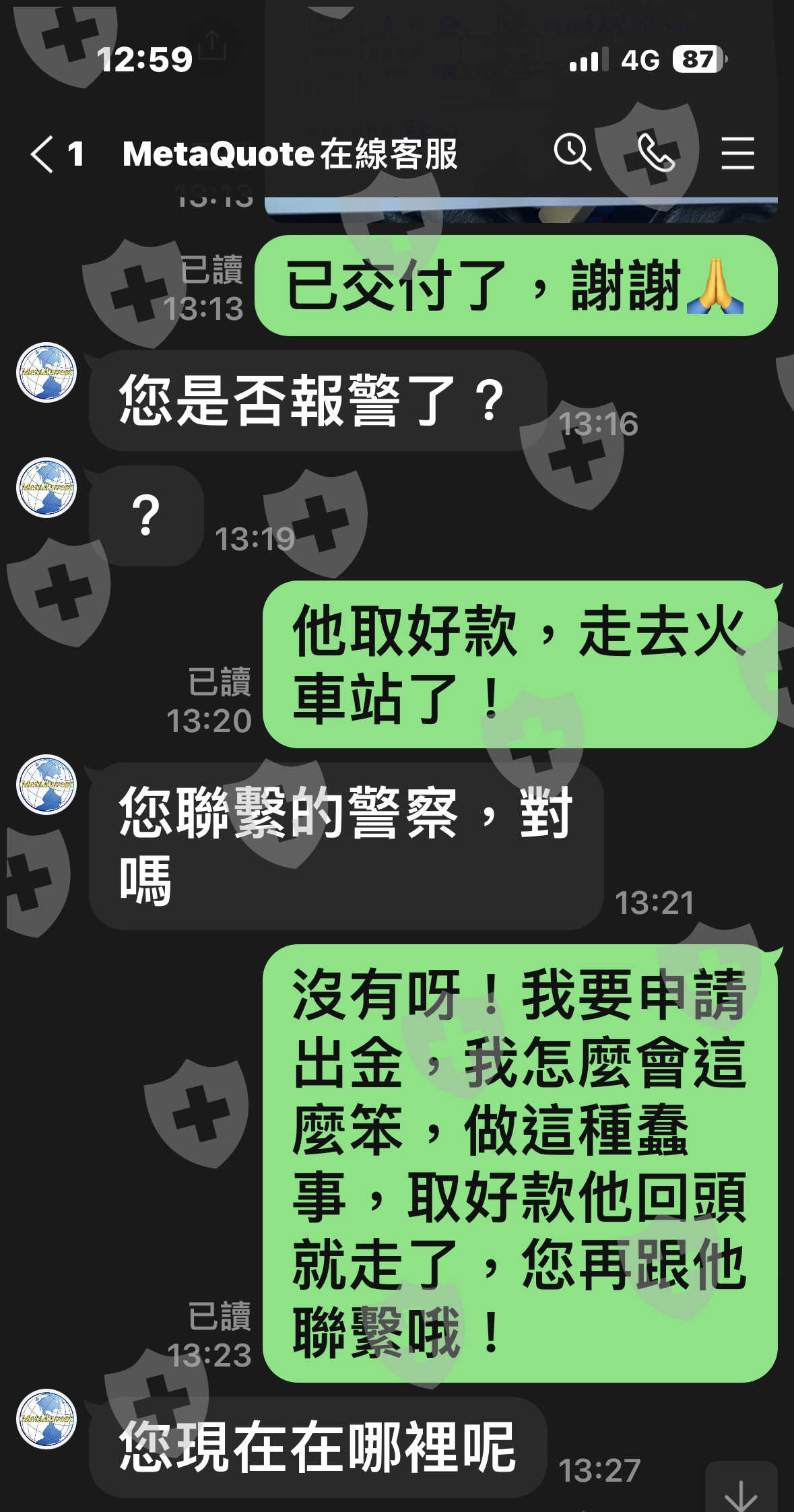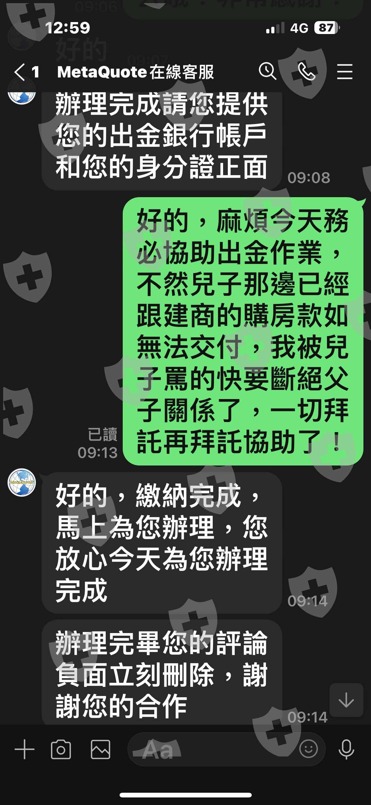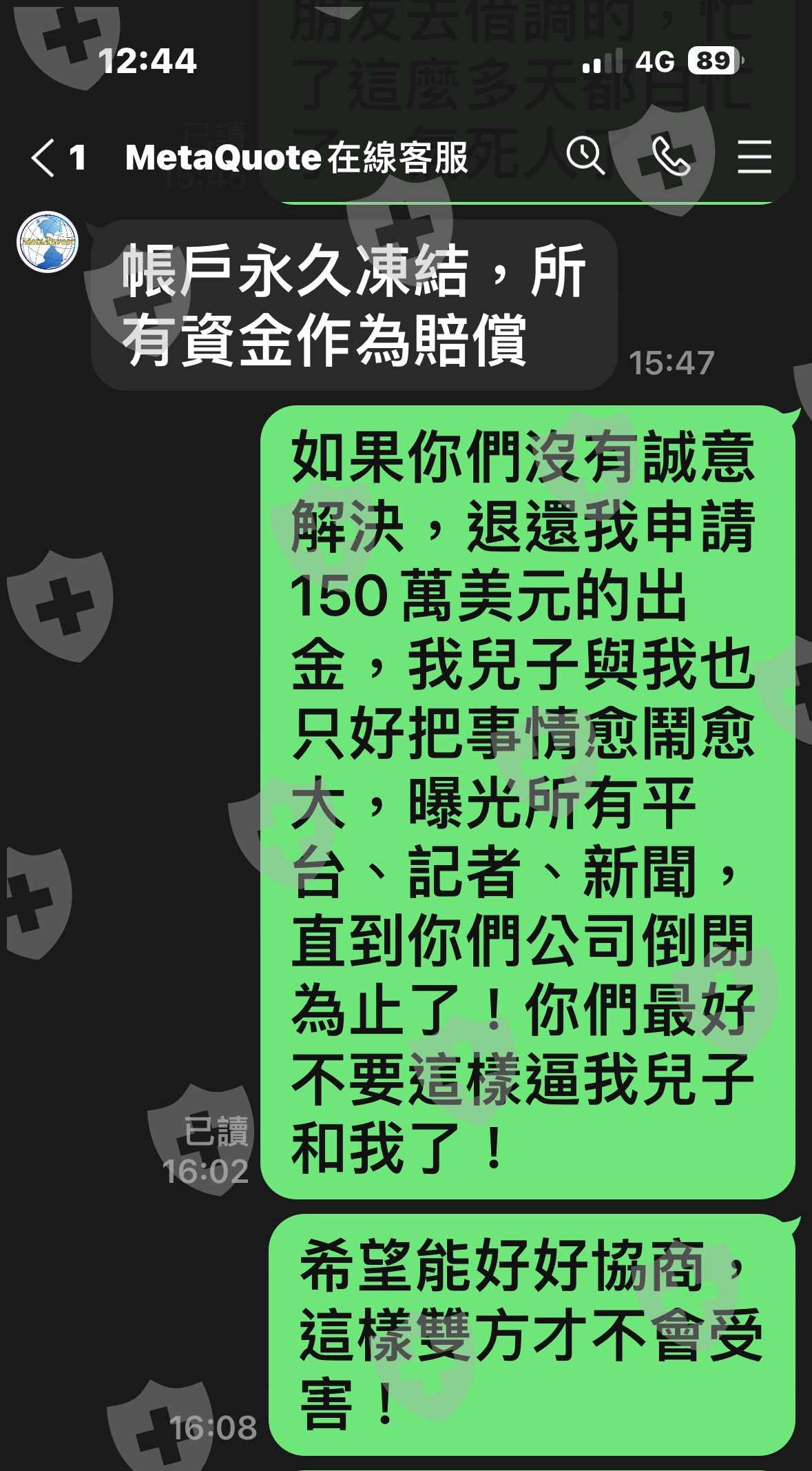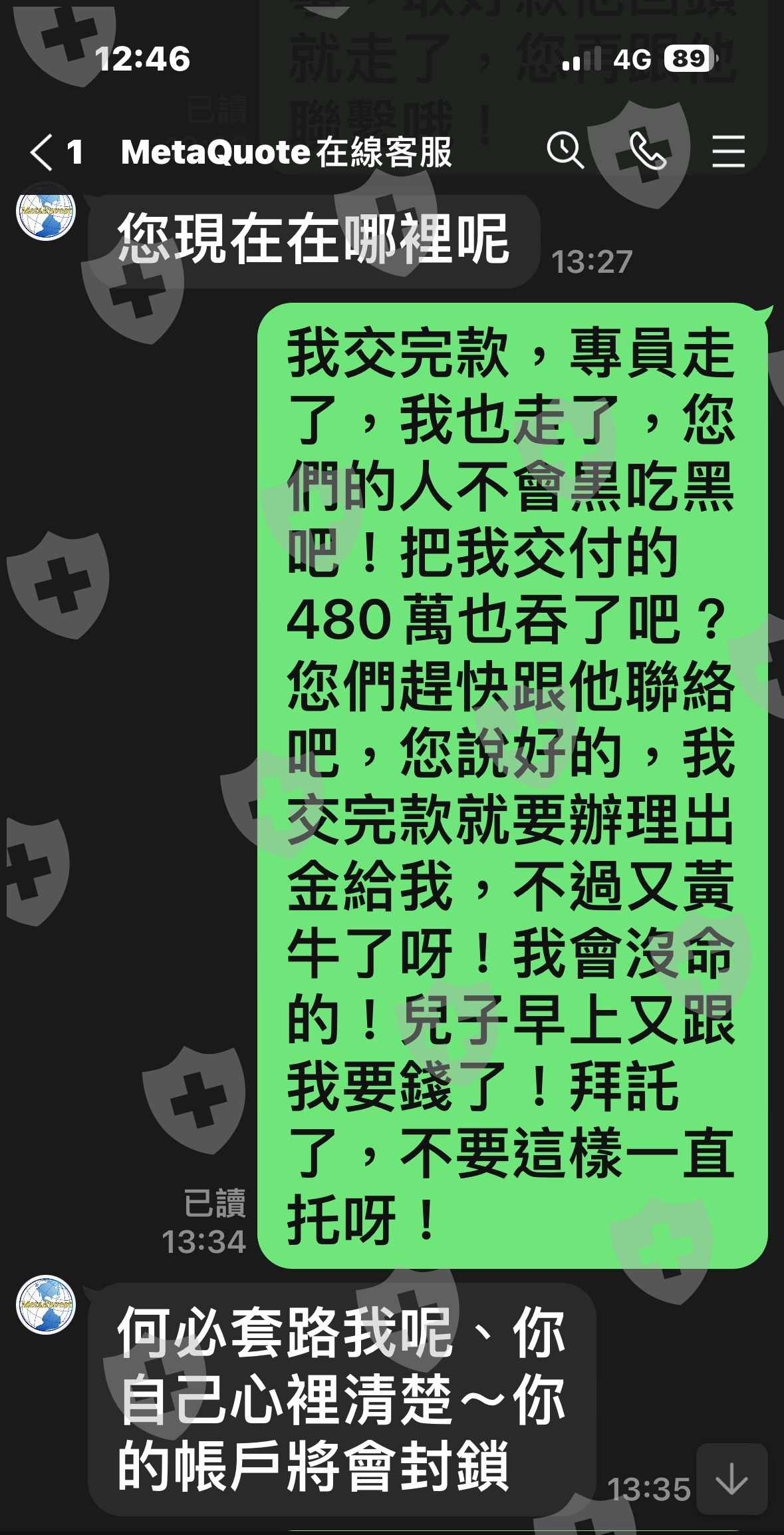 Ridge Corporation客服人員 說我曝光他們,要我賠償我申請出金150萬美元,台幣4800萬的10%賠償他們損失,就是480萬台幣,還想來騙我的錢,投資大眾一定要記得報警處理,把他們一網打盡,讓他們公司倒閉,吐回投資人詐騙的錢,一個一個捉起來,讓他們在牢底坐穿,嚐嚐詐騙人、沒有良心、禽獸不如的東西的後果,記得也要把他們騙回來,讓他們吃盡被騙的滋味!大家加油…