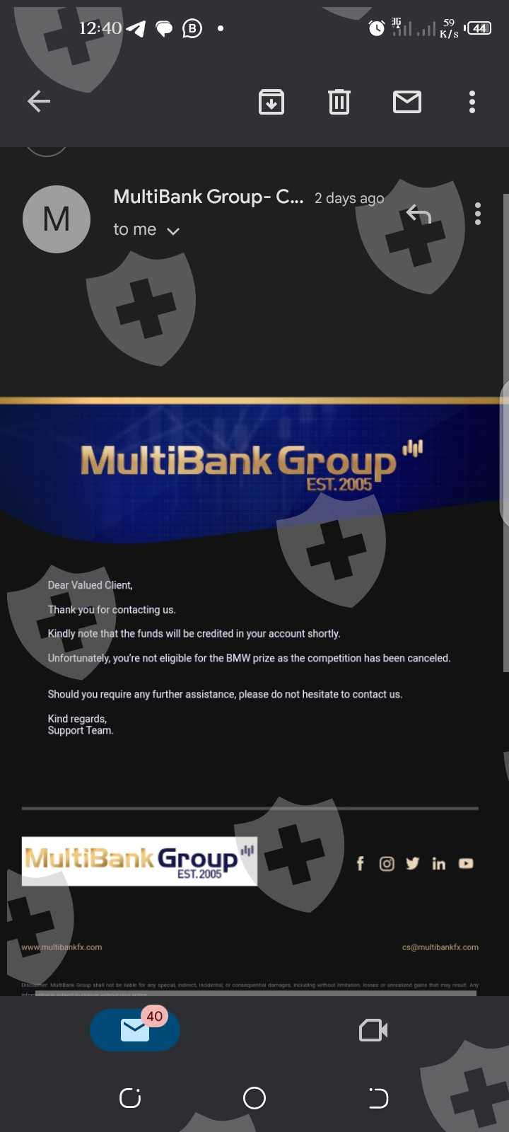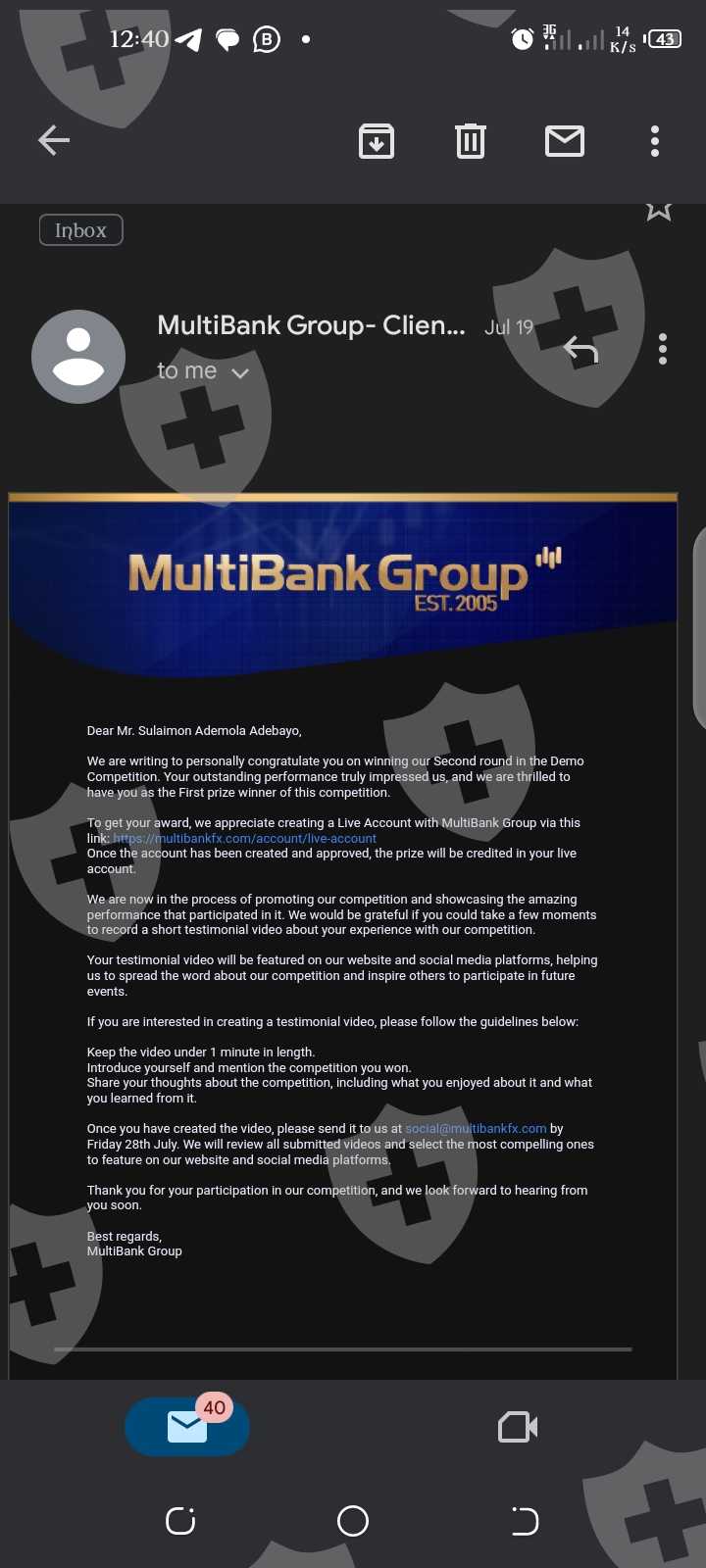 I won the second round demo contest promoted by multibank group which takes place in May/June 2023 but the been delay the payment of the prize won and make force excuses in order to avoid the payment of the contest prize.