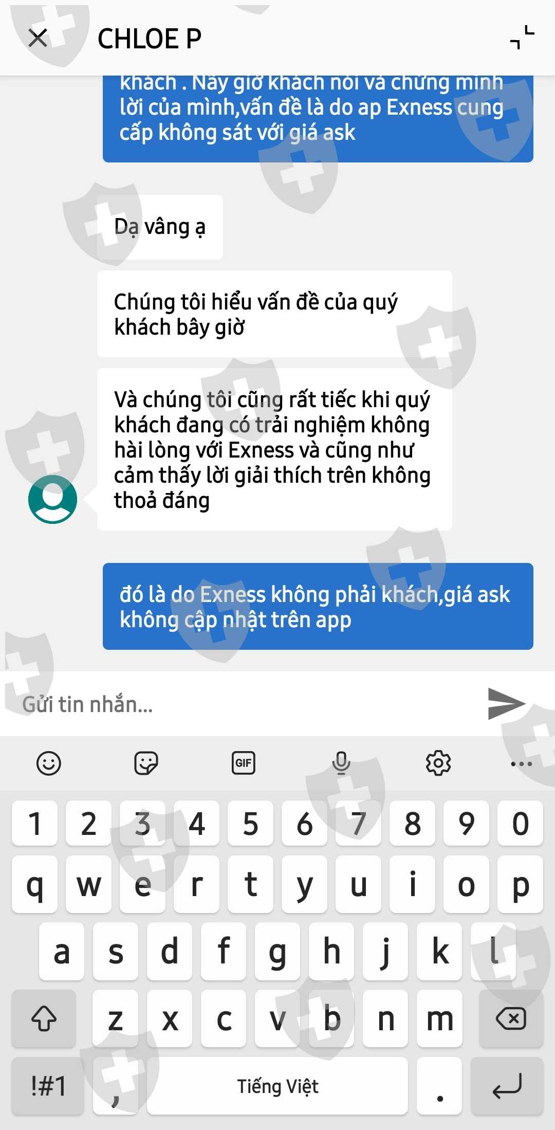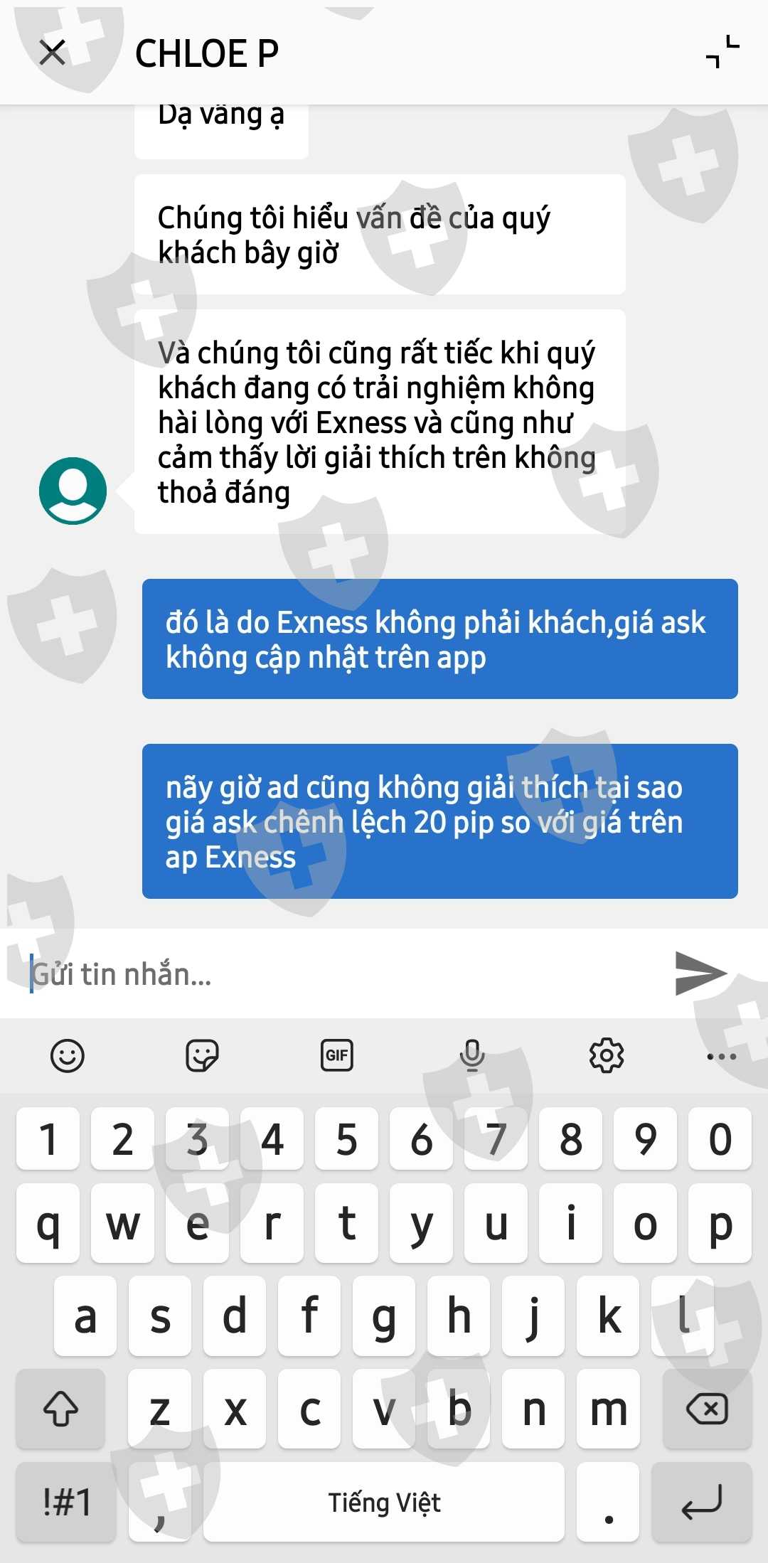 1/8/2023 tôi sell cặp EUR/AUD đặt stoplot tại 1.66650 sang ngày 2/8 lúc 5h sáng lệnh của tôi dính stoplot nhưng giá trên app của Exness vẫn chưa tới,tôi có nhờ ad bên Exness hỗ trợ và nhận được hàng tá lí do : giá ask thể hiện đúng tại giá 1.66650 và giá ask không thể hiện trên app Exness ( ap Exness vô dụng ) , do nến 1 phút thời điểm đó giao động cao lúc 5h sáng, do khách trade trên mt4 or mt5 yêu cầu khách cập nhật lại ( tôi chơi trên ap Exness) . Kết quả : giá ask luôn cách hơn 20 pip so với giá trên app của Exness và lệnh đấy dính stoplot là đúng khiếu nại không được giải quyết.