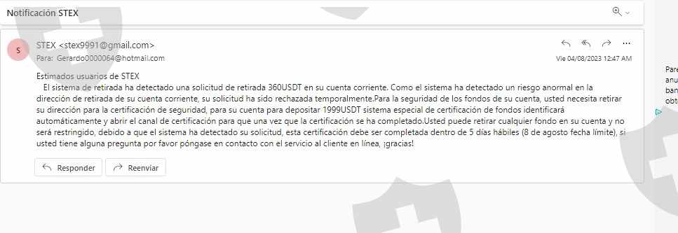 我无法从 STEX 提取我的钱,他们要求更多钱