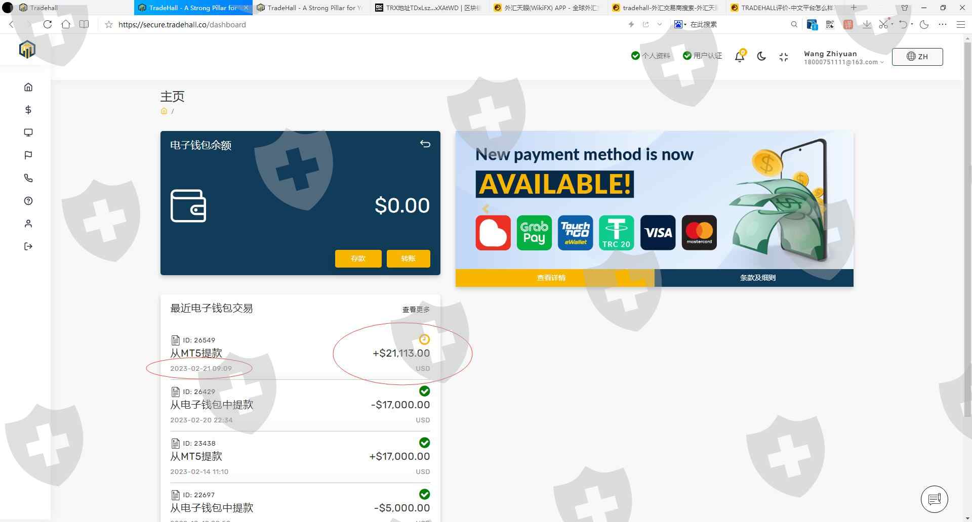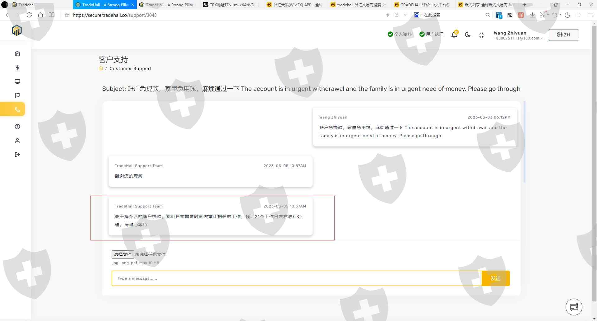 tradehall提款6个月没有处理,平台回复21天处理,到8月还是没有回复,没有处理