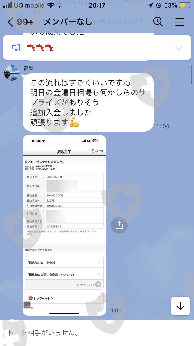 LINEで人を集め、先生と名乗る人たちと沢山のサクラからなるグループ。