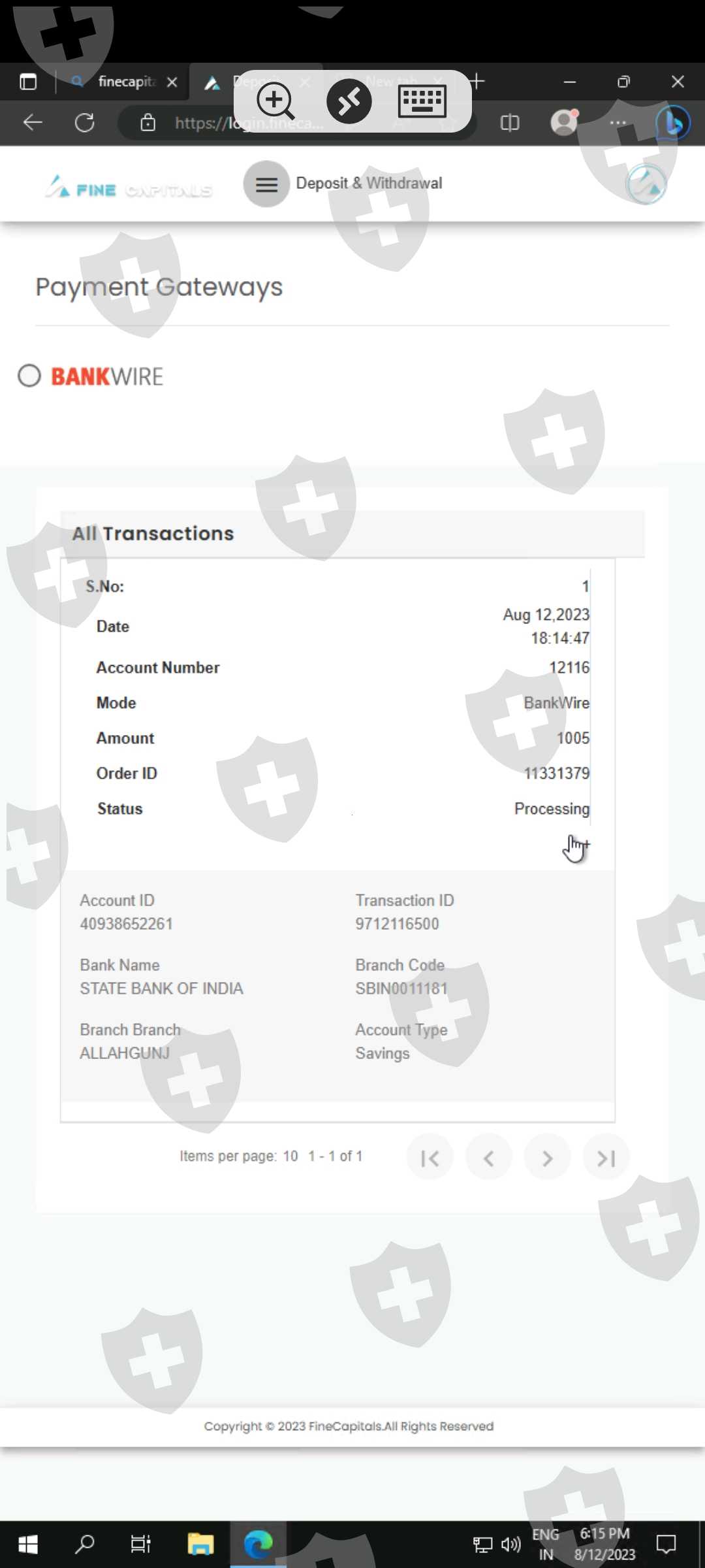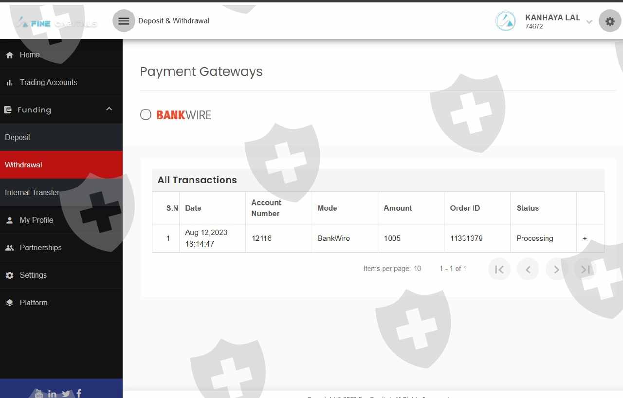 I don't receive my fund. withdrawal request was sent for $1005 USD Withdrawal on 12 August with order ID 11331379 and transection ID 9712116500 . My mt4 ID is 12116.