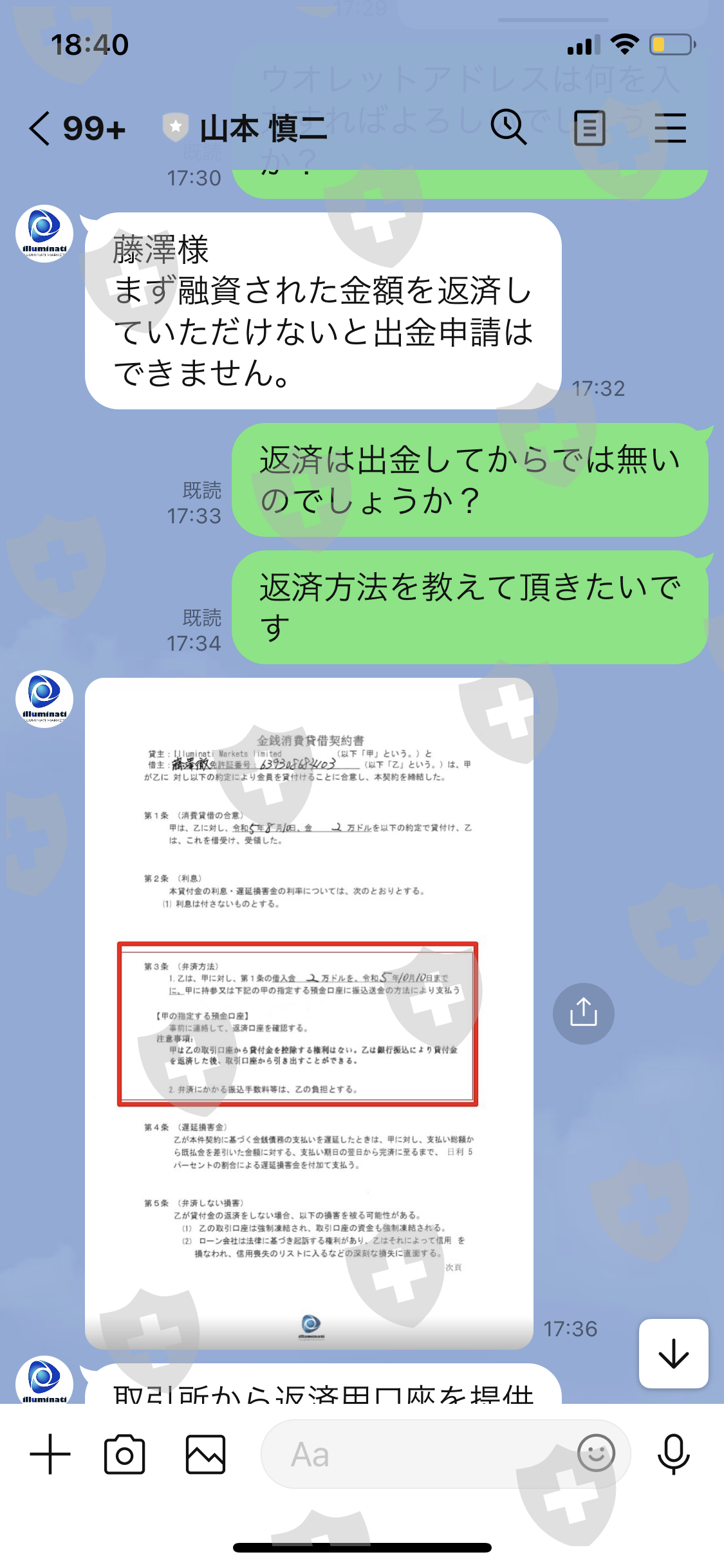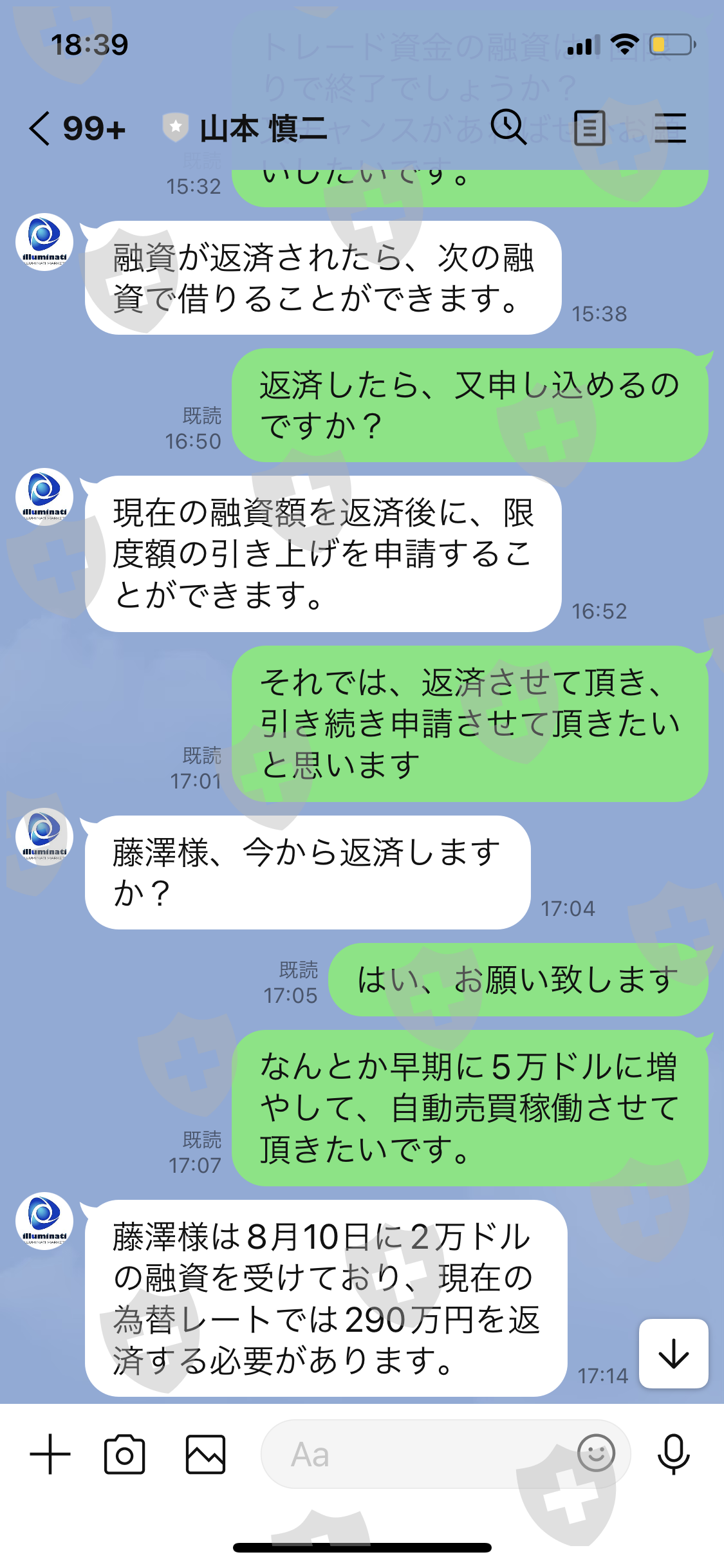 我被告知我可以借用投资资金,因此我收到了 20,000 美元的贷款,并反映在我的交易账户中。我交易盈利了,所以我联系他们三天左右还钱,但他们说他们的银行账户无法还清,所以他们让我先转2万美元现金。我被告知,还清2万元现金后,可以自由从账户提款,请问这是诈骗案吗?当我咨询律师时,律师告诉我,这仍然是一个骗局。他们未经许可在LINE群组中注册,并声称自己是投资集团。类似案例敬请留意。